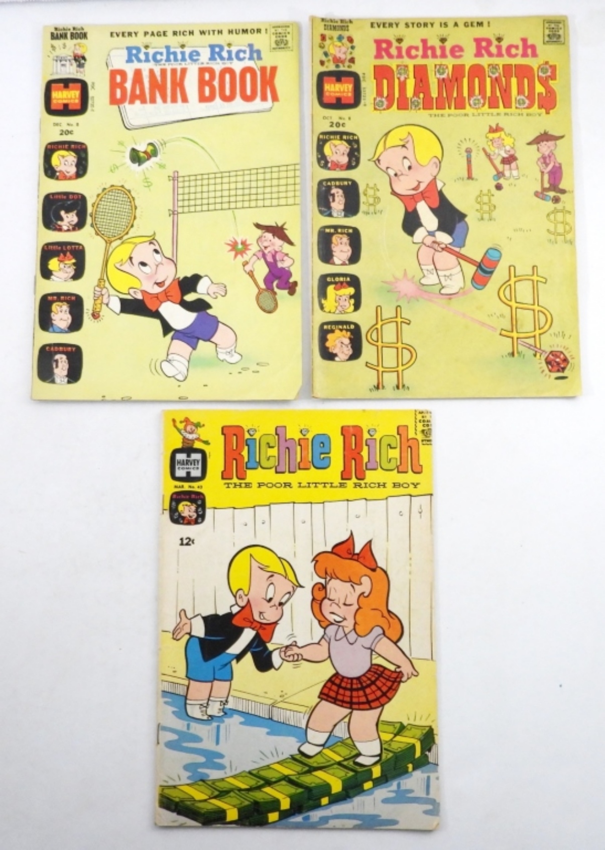 RICHIE RICH #43, RICHIE RICH DIAMONDS #8, RICHIE RICH BANK BOOK #8 – VERY GOOD CONDITION