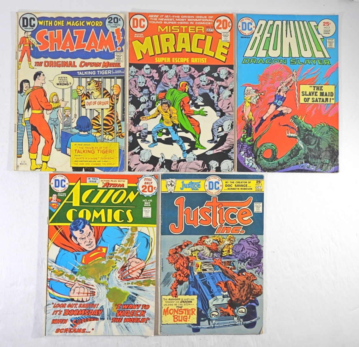 VARIETY OF DC COMICS SHAZAM! #7, BEOWULF #2, MISTER MIRACLE #15, 3 JUSTICE LEAGUE AMERICA #’S 117,118,122, ACTION COMICS #435, 2 KAMANDI #’S 17 & 29, JUSTICE INC #3 ALL IN GOOD CONDITION