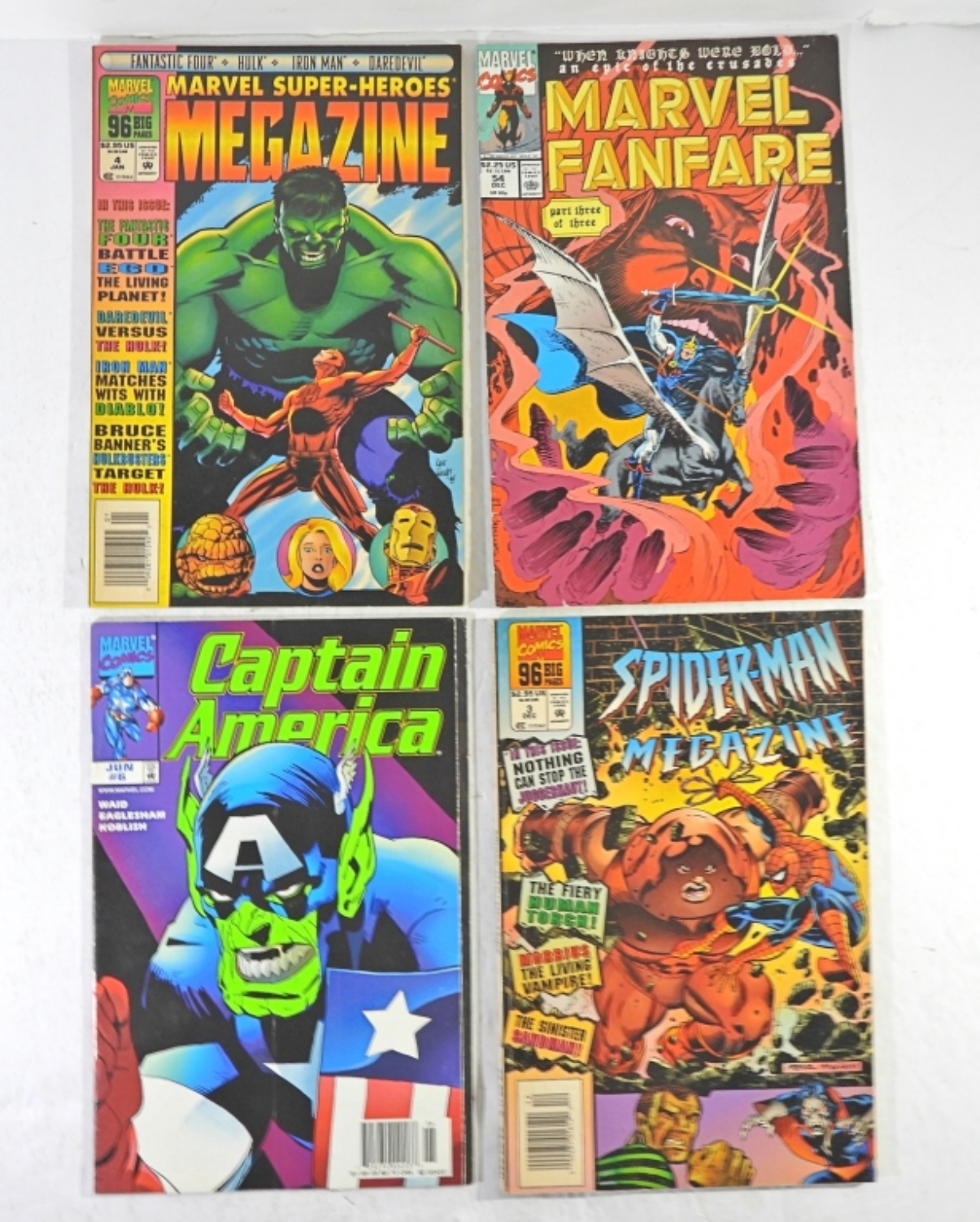 MARVEL FANFARE #54 1990, CAPTAIN AMERICA #6 1998, SPIDERMAN MEGAZINE #3 1994, MARVEL SUPER-HEROES MEGAZINE #4 1995 ALL IN GOOD + CONDITION