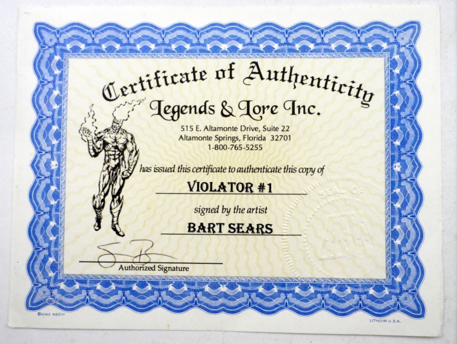 COA by LEGENDS & LORE INC – SIGNED by ARTIST