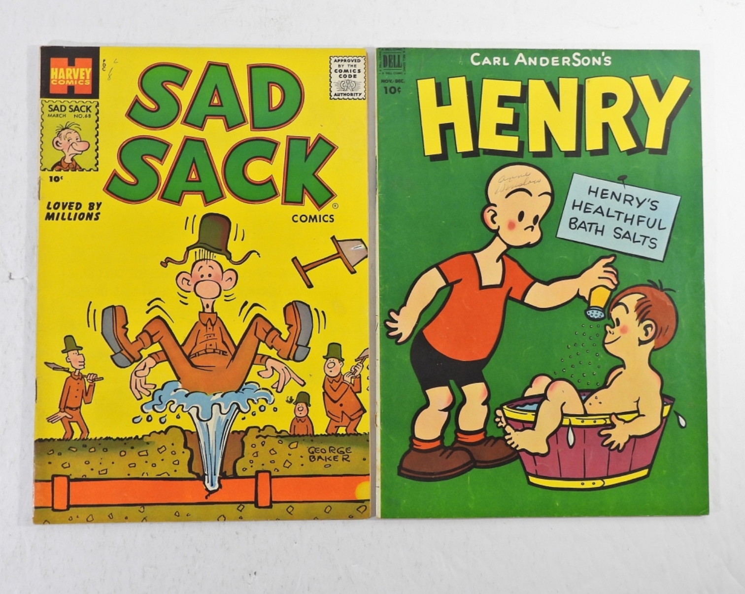 DELL COMICS-CARL ANDERSON’S “HENRY”, HENRY’S HEALTHFUL BATH SALTS. 1952 VG. HARVEY COMICS SAD SACK-MARCH NO.68 VG