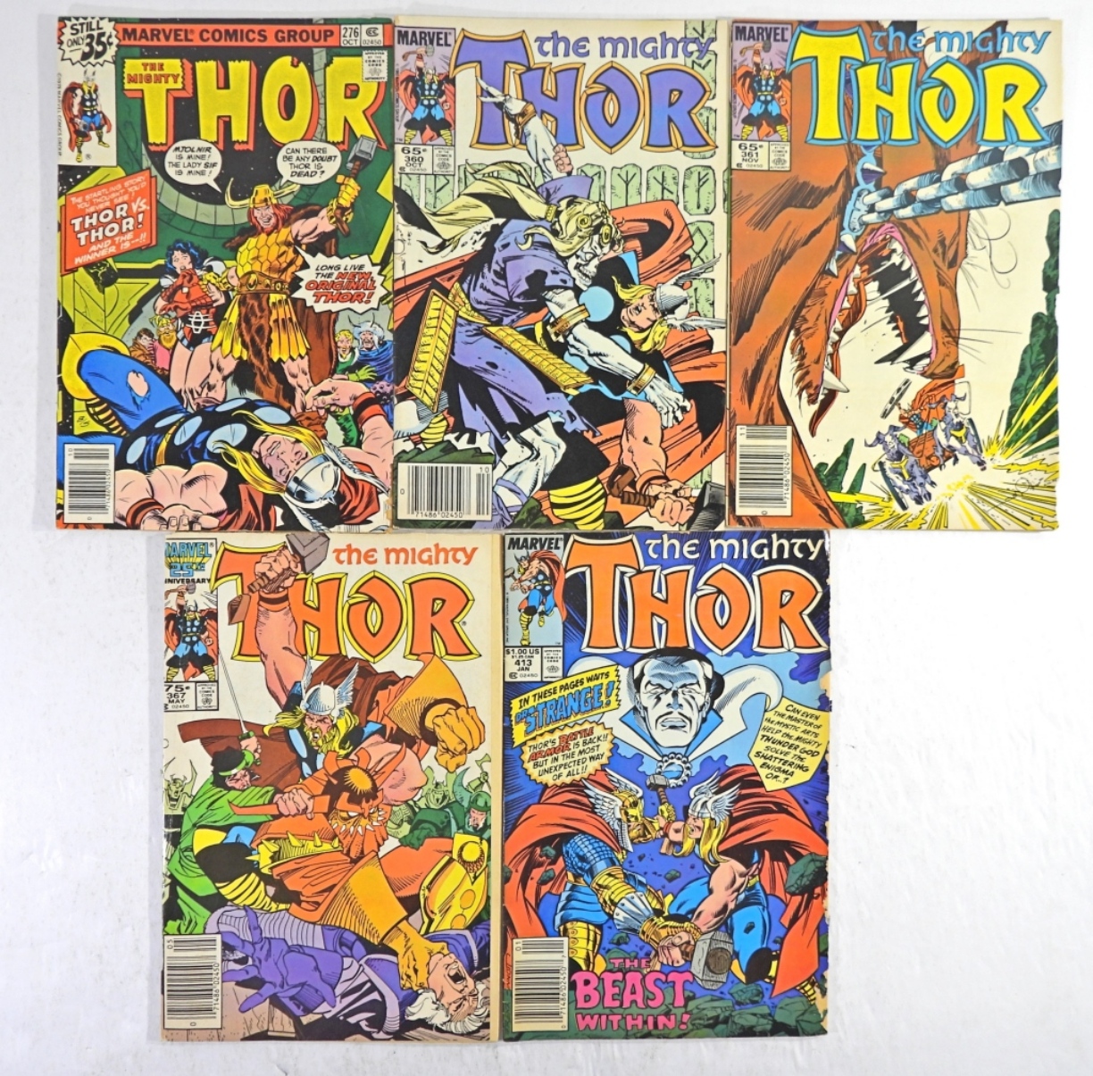 MARVEL THE MIGHTY THOR ISSUE #’S 276,360,361,367,413 ALL IN GOOD CONDITION