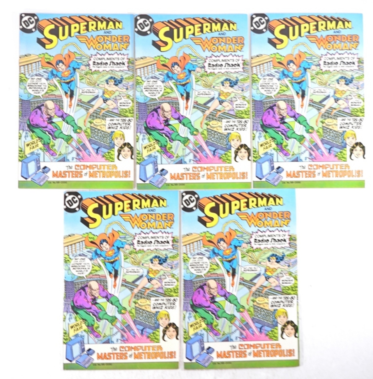 5 ISSUES OF DC SUPERMAN AND WONDERWOMAN RADIO SHACK ISSUE FROM 1982 GREAT FOR A STOREFRONT COMIC SHOP