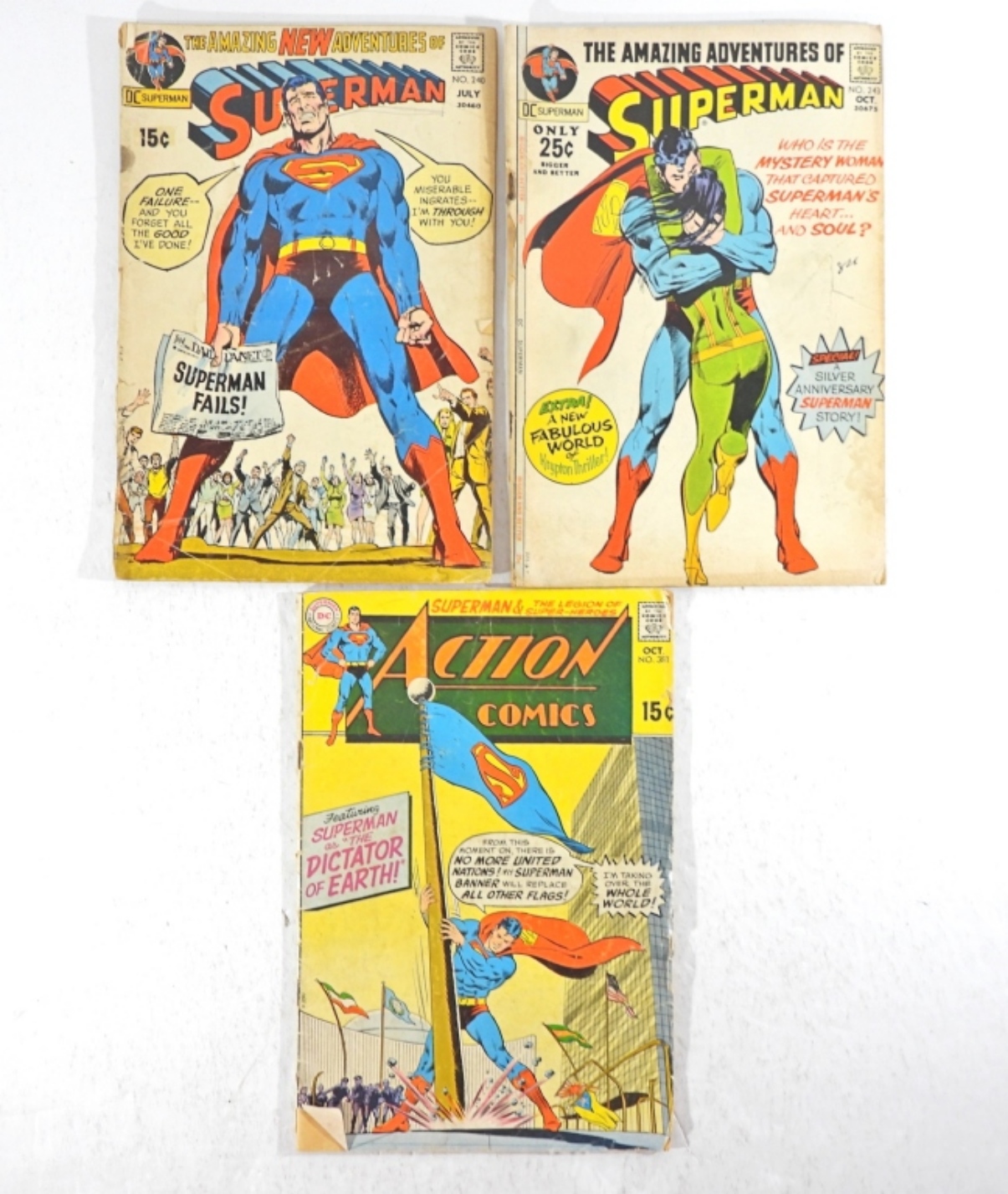 2 DC SUPERMAN ISSUES #240 & 243 BOTH IN FAIR/GOOD CONDITION. 1 ACTION COMIC ISSUE #381 IN GOOD/FAIR CONDITION
