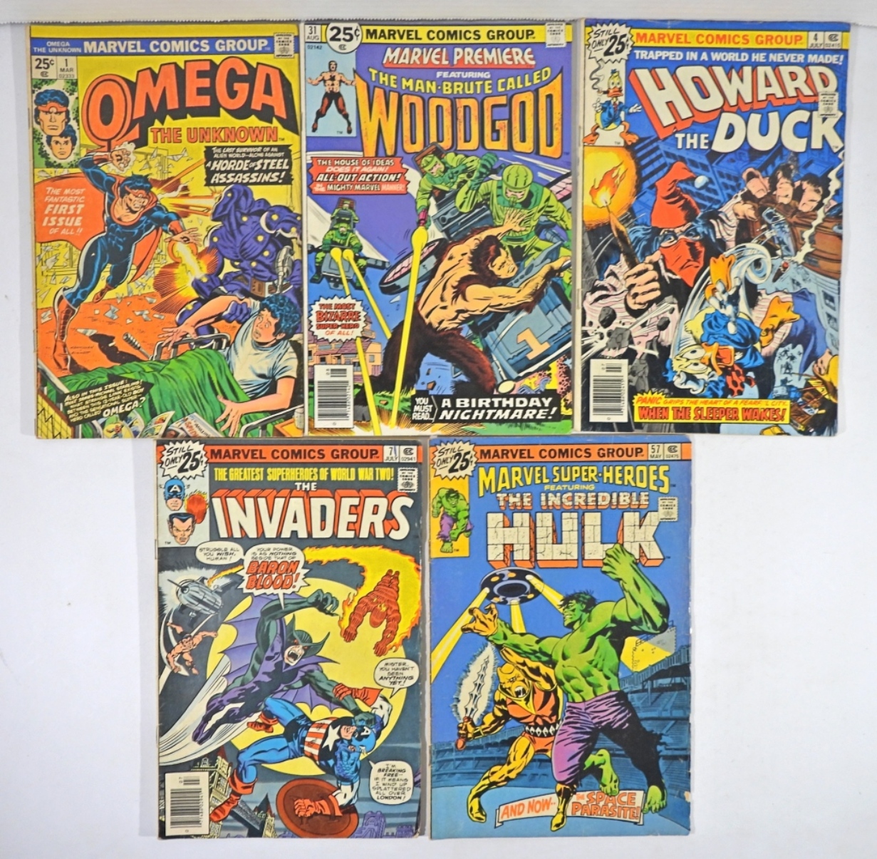 OMEGA #1, WOODGOD #31, HOWARD THE DCK #4, HULK #57, INVADRES #7