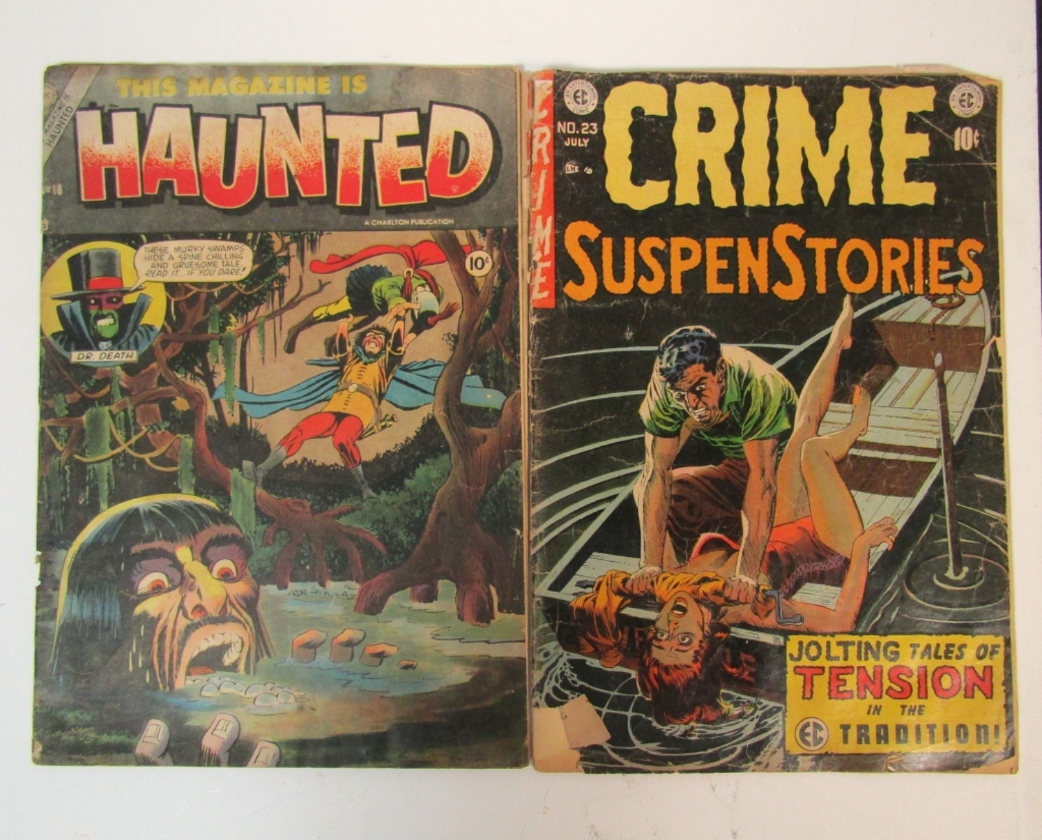 EC CRIME SUSPENSTORIES NO. 23 JULY 1954-FAIR. CHARLTON THIS MAGAZINE IS HAUNTED “DR. DEATH” #18 JULY 1954-GOOD.