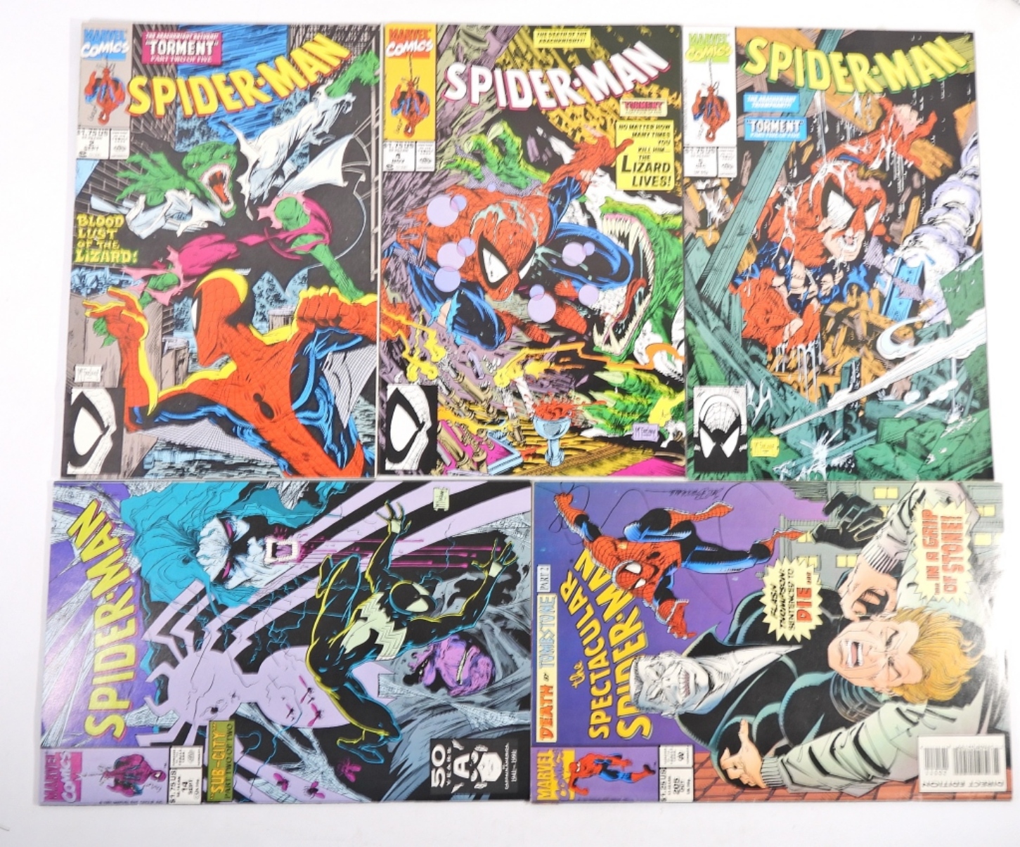 FIVE MARVEL SPIDER-MAN. ISSUES 2, 4, 5, 14, 205. ALL IN VF.