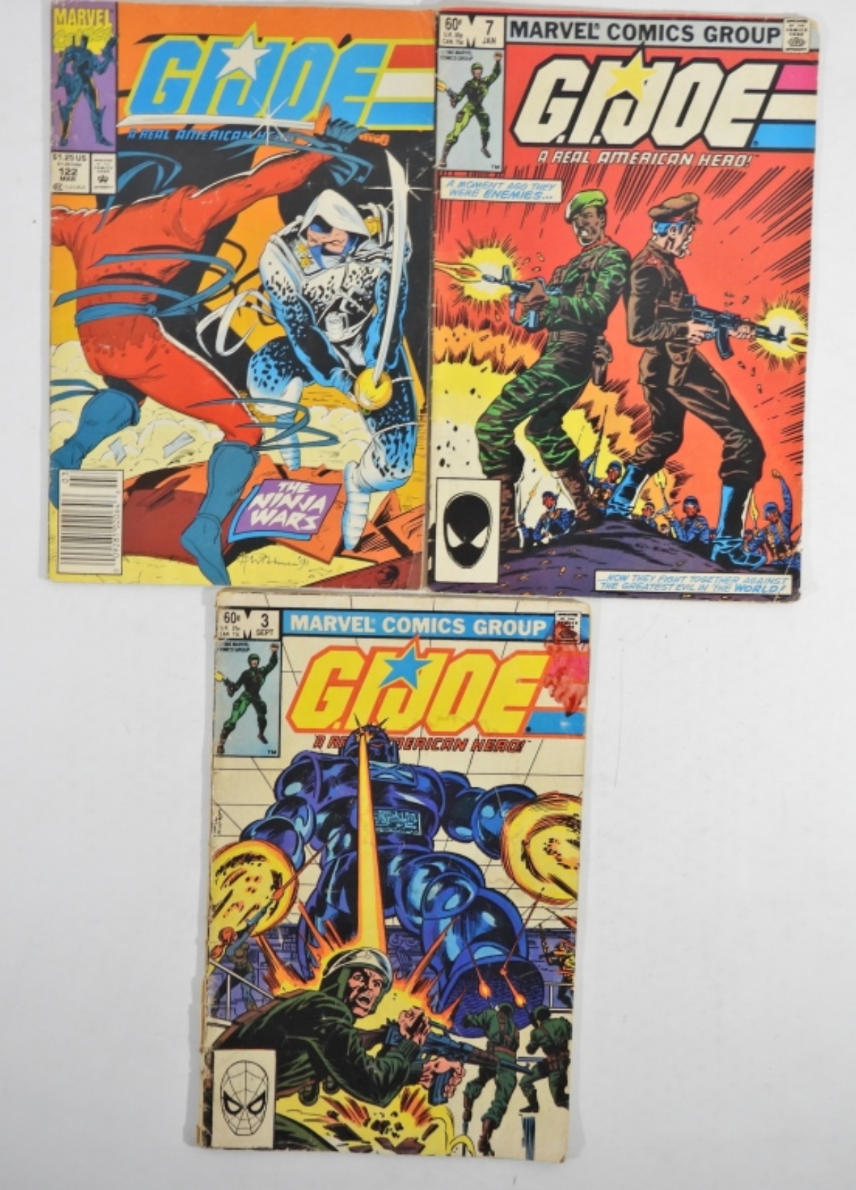 MARVEL G.I. JOE A REAL AMERICAN HERO, SEPT 1982 #3-FAIR. JAN 1983 #7-GOOD. MARCH 1992 #122-FAIR