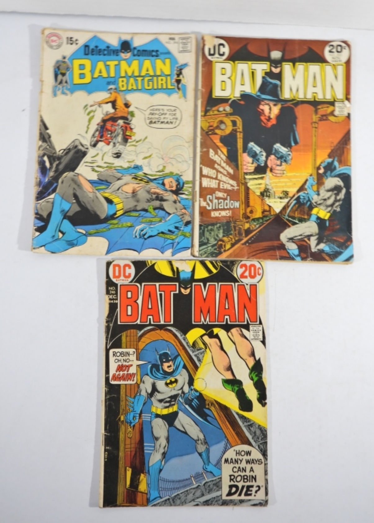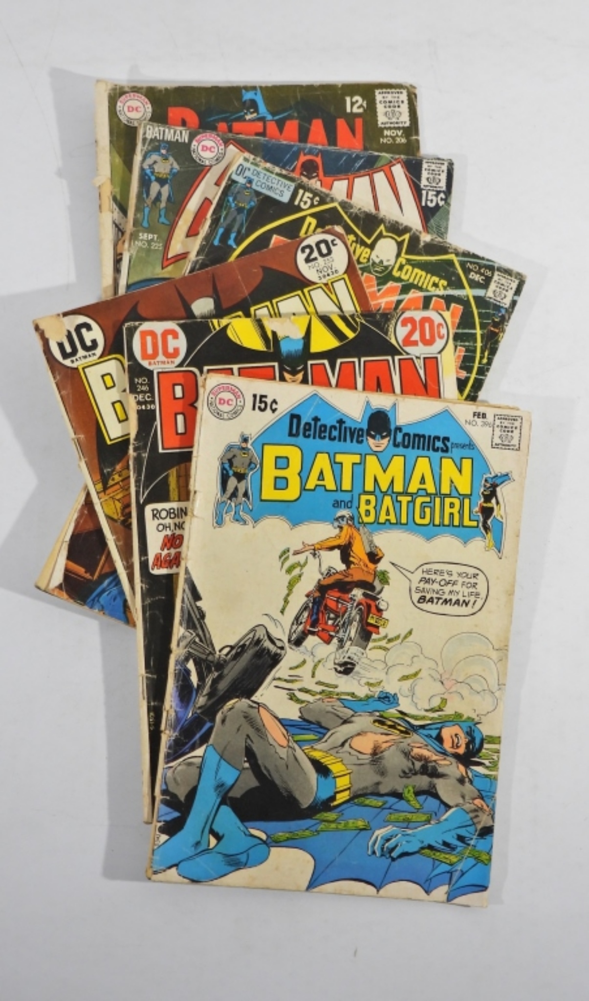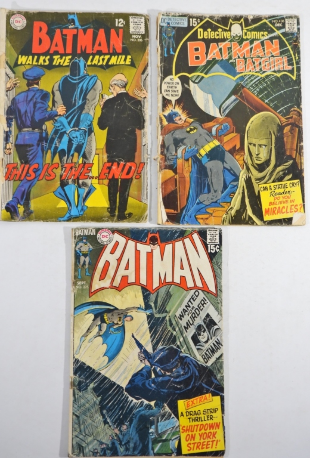 DC BATMAN SILVER & BRONZE AGE COMICS. BATMAN WALKS THE LAST MILE 1968 #206-FAIR. BATMAN 1970 #225-GOOD. BATMAN & BATGIRL 1970 #406-FAIR. BATMAN & BATGIRL 1970 #396-FAIR. BATMAN 1972 #246-FAIR. BATMAN 1973