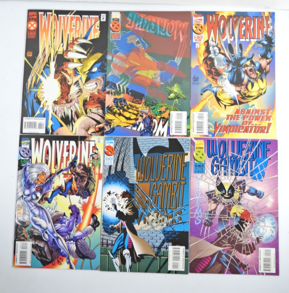 SIX MARVEL WOLVERINE COMICS CIRCA 1995. #89, 91, 95, 96. WOLVERINE GAMBIT VICTIMS #1 & #2. ALL ARE VG/FINE
