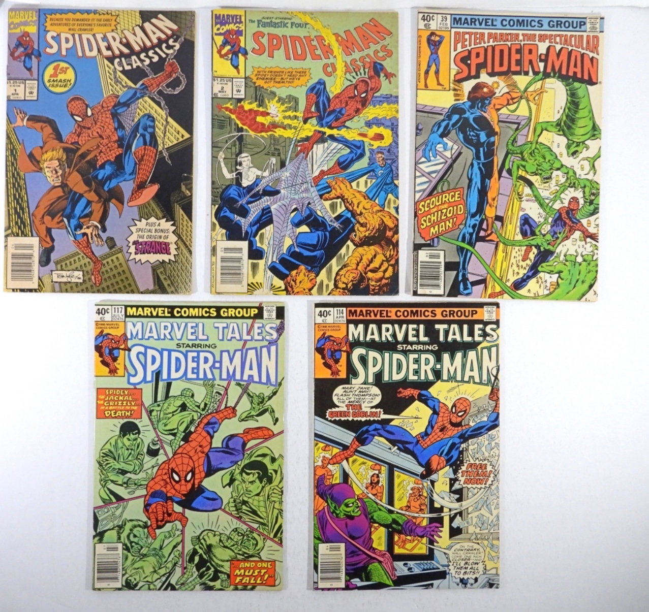 5 VARIOUS SPIDERMAN COMICS, FINE TO GOOD CONDITION