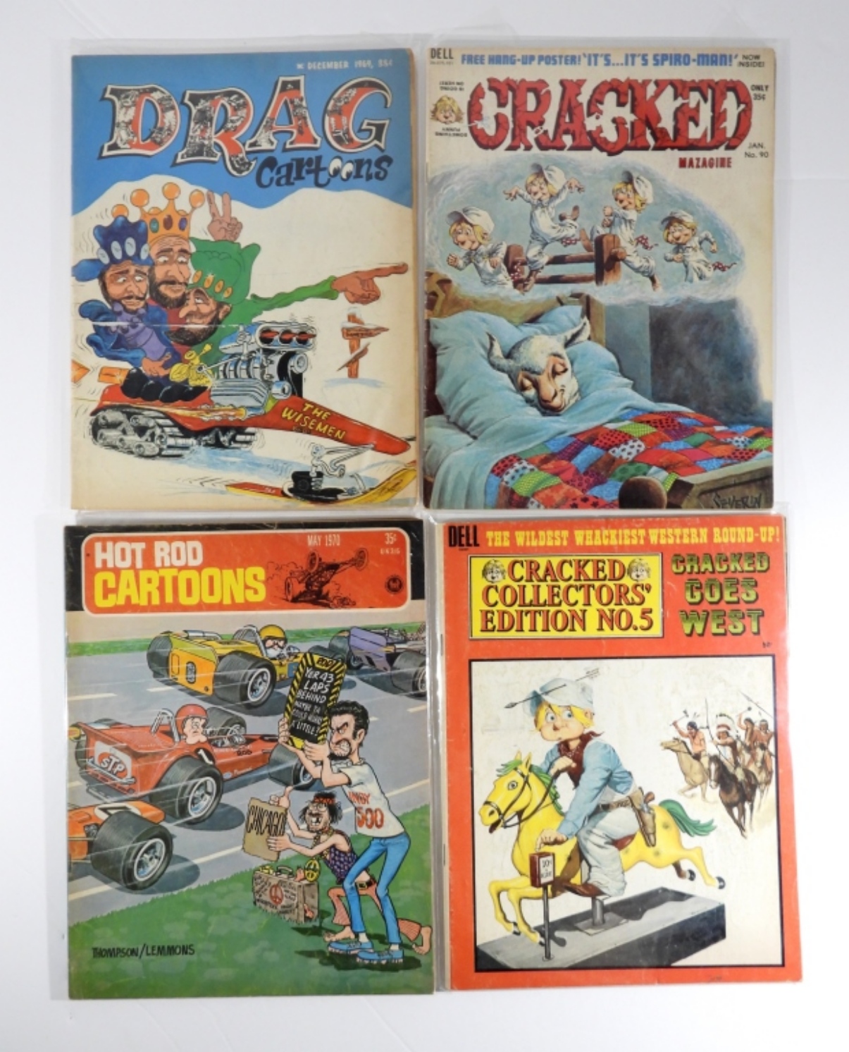 FROM DELL CRACKED MAGAZINES, PLUS 1- HOD ROD CARTOONS, 1- DRAG CARTOON
