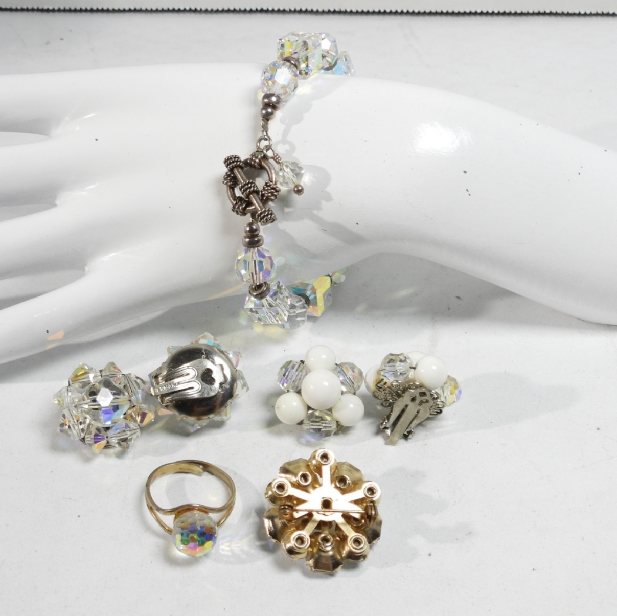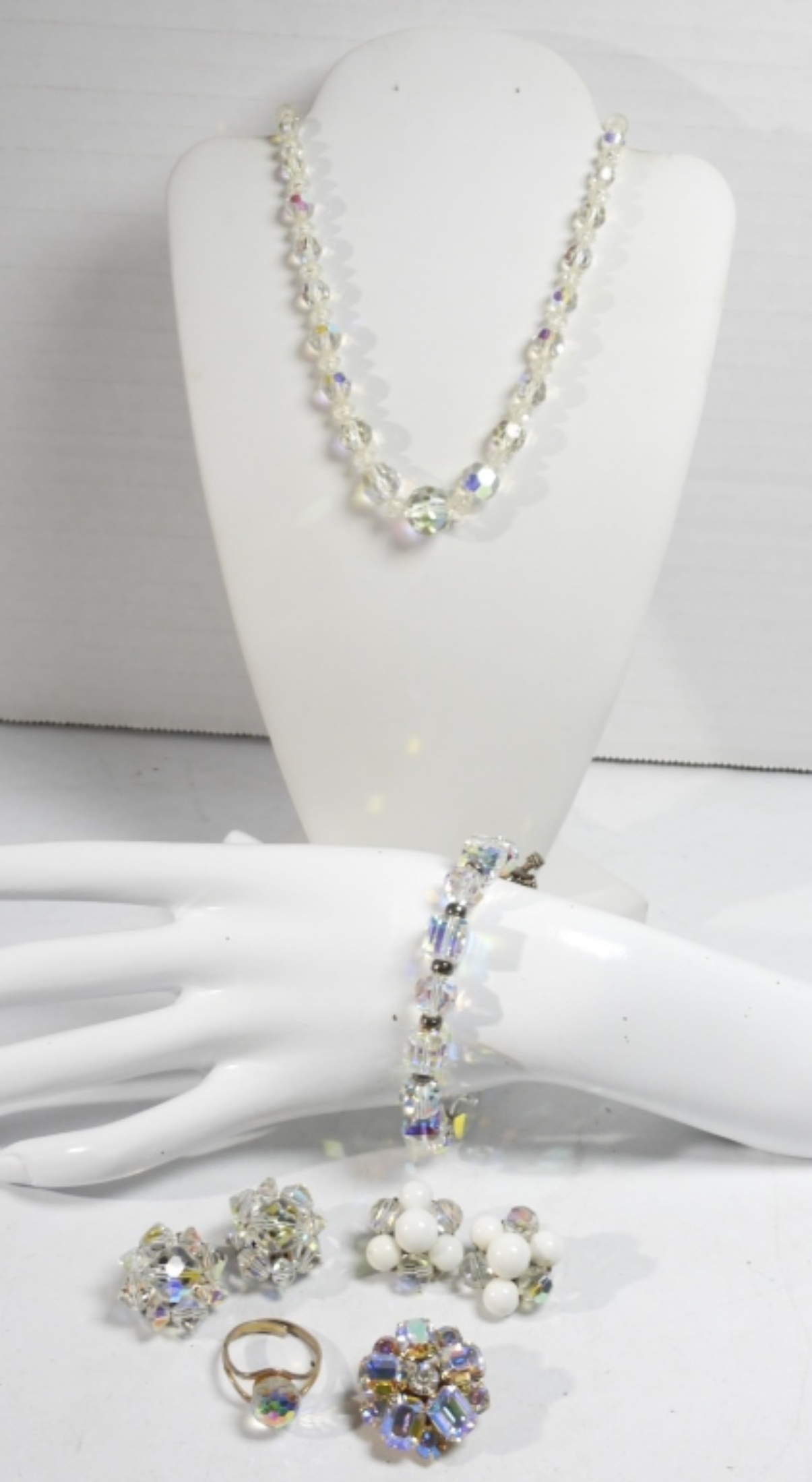 8″ BRACELET, 12″ NECKLACE, (2) CLIP-ON EARRING SETS, ADJUSTABLE RING & PIN