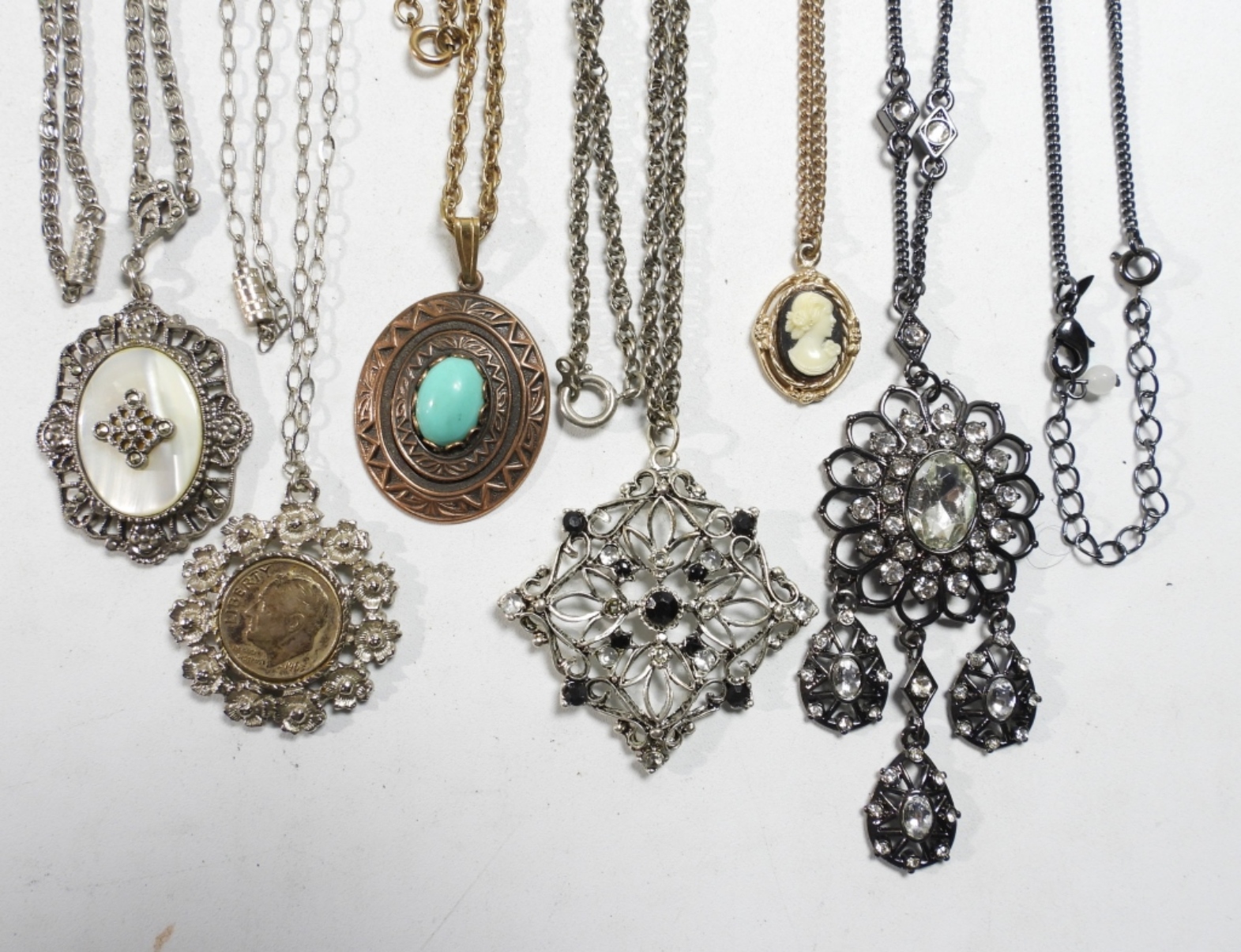 SILVER DIME PENDANT, MOTHER of PEARL & MORE – VARIOUS LENGTHS