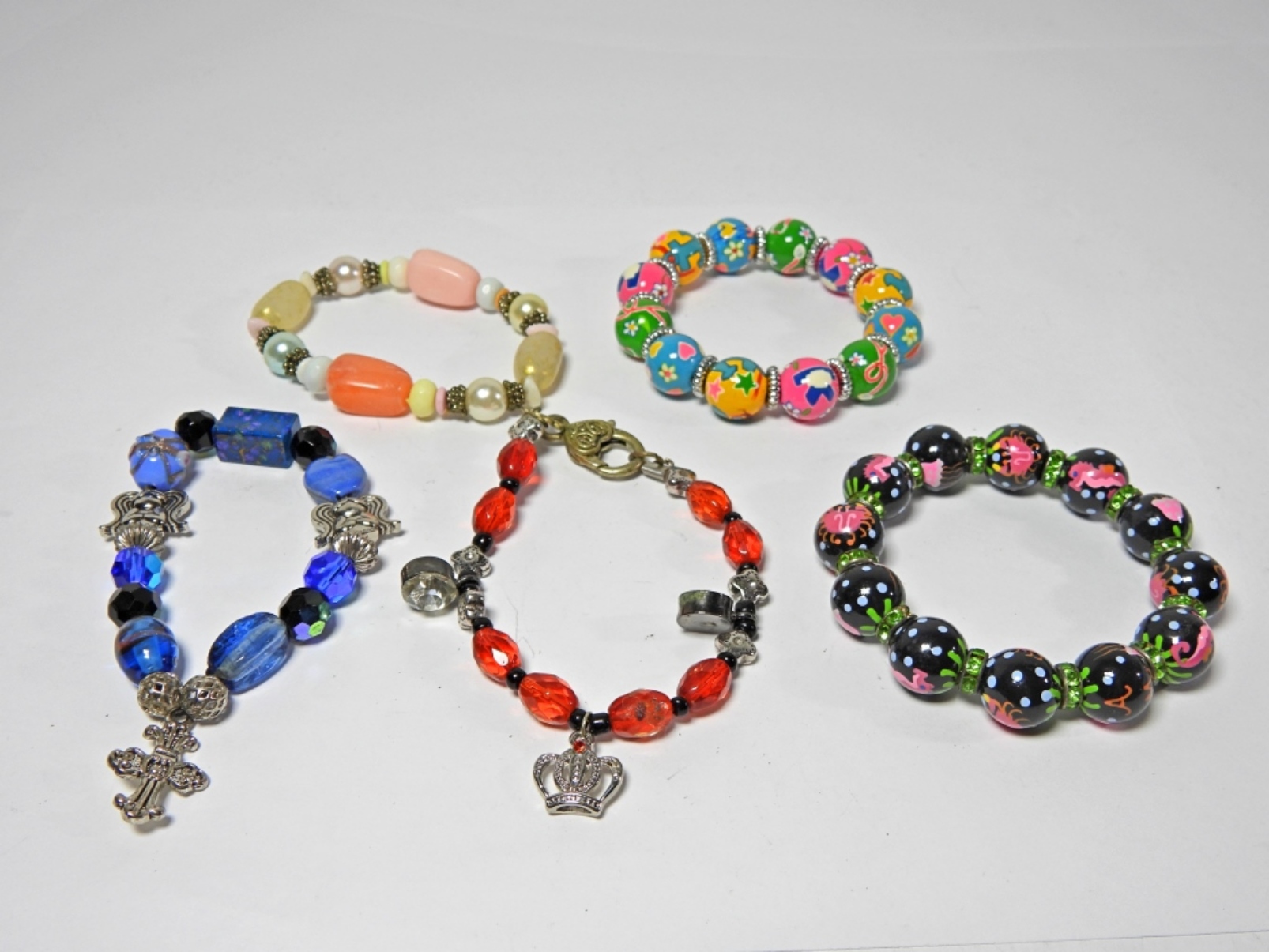 5 BEADED BRACELETS. 2 BEADED NECKLACES 28INCH & 18INCH