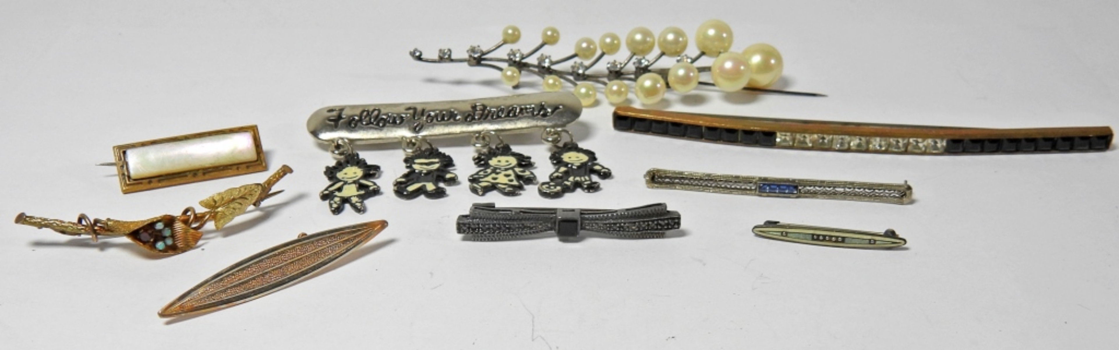 9 GOLD AND SILVER TONE PINS NEAT VARIETY!