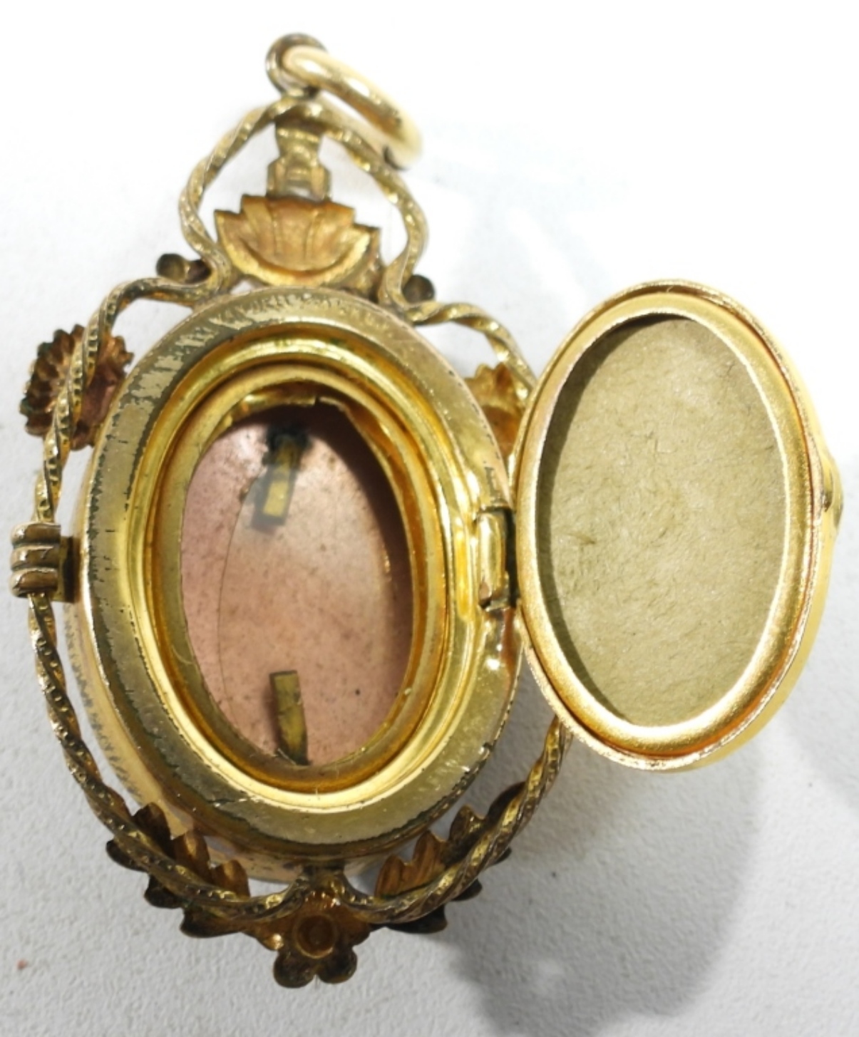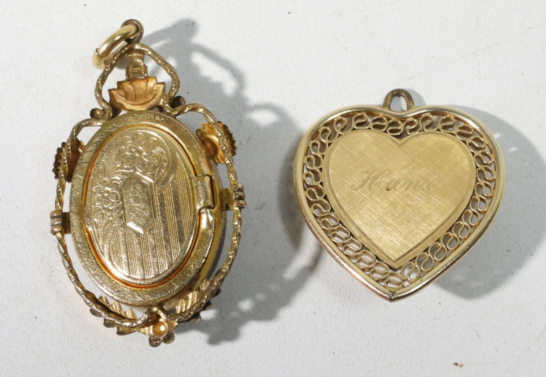 VINTAGE GOLD TONE VAN DELL 12KGF LOCKET WITH BLACK ONYX BACKING. HEART SHAPED CAMEO GOLD TONE PENDANT.