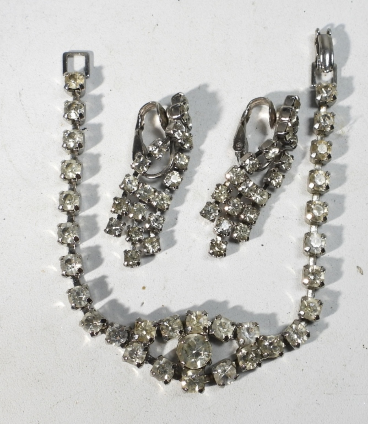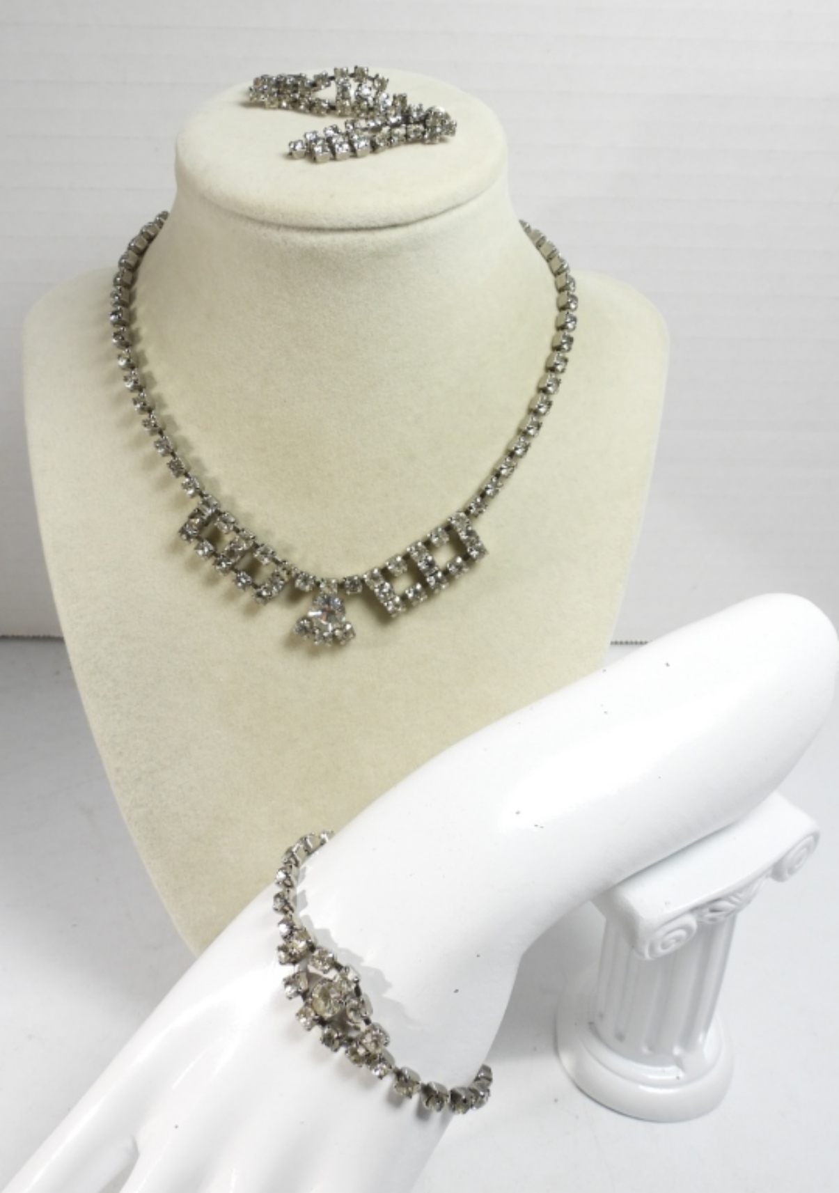 NECKLACE 14″ missing (1) STONE, 6 1/2″ BRACELET & CLIP-ON EARRINGS