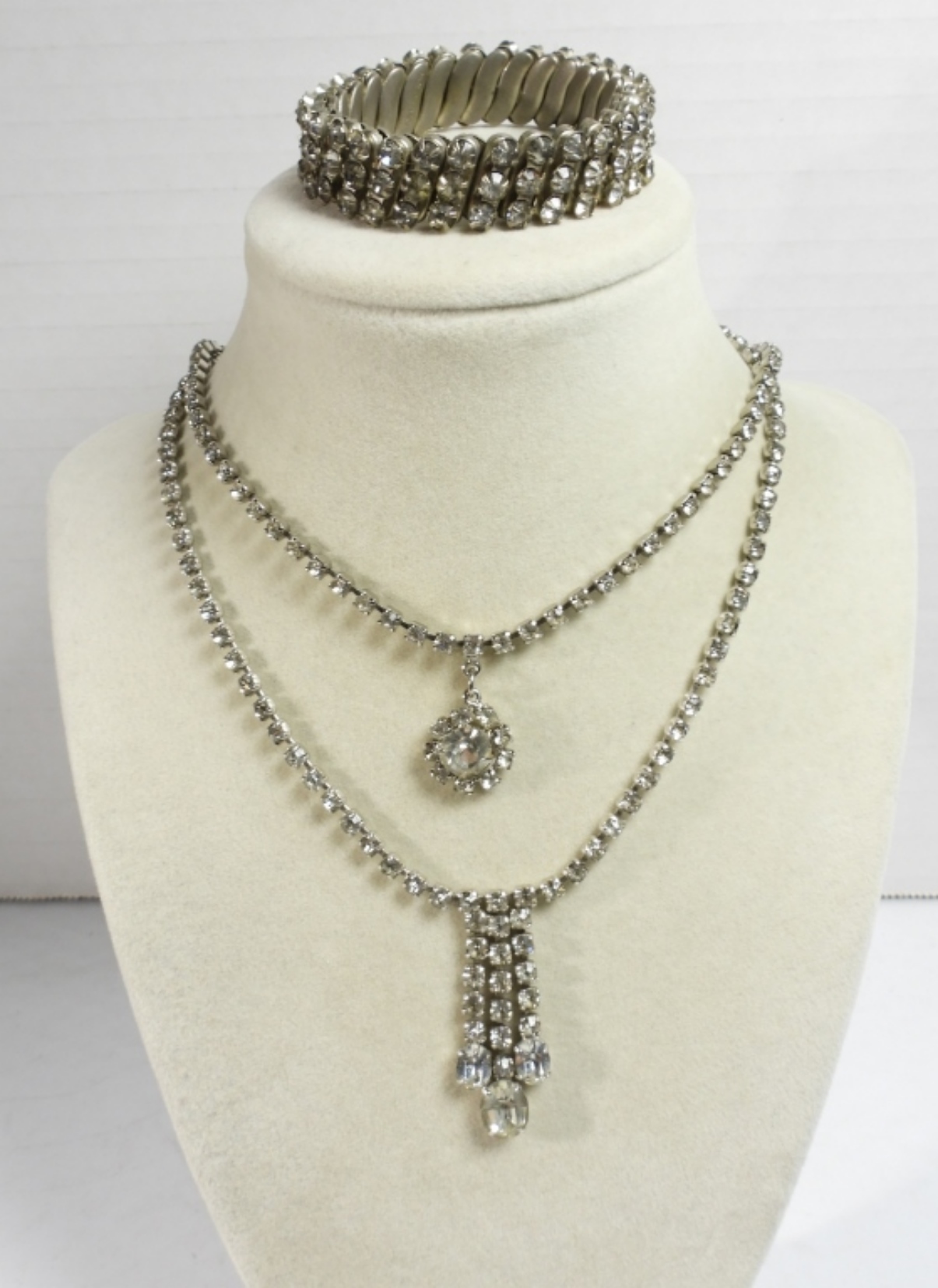 (2) NECKLACES 14″-15″ (1) need clasp repair & STRETCH BRACELET