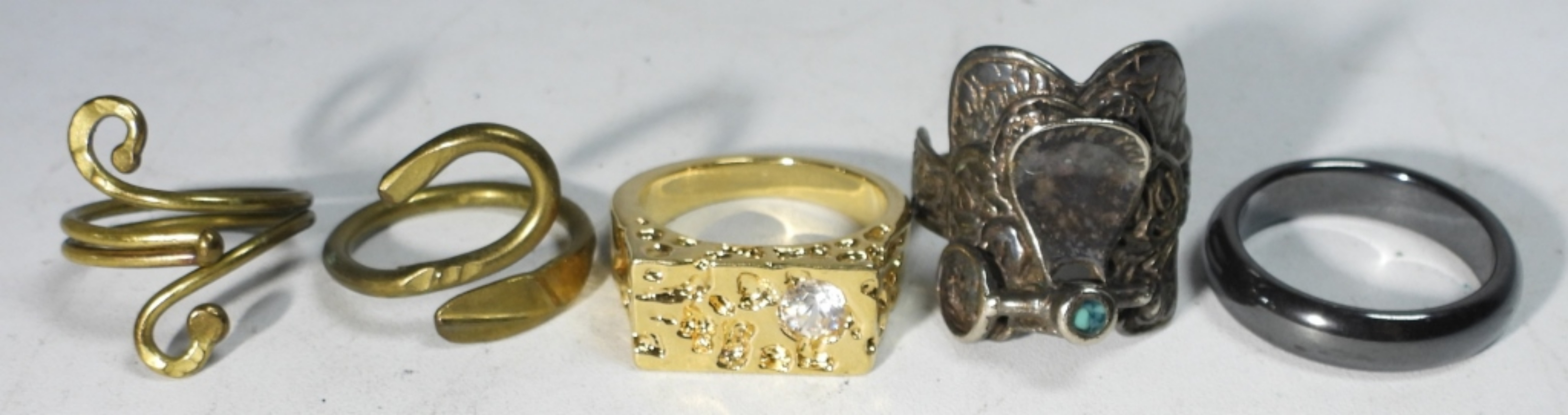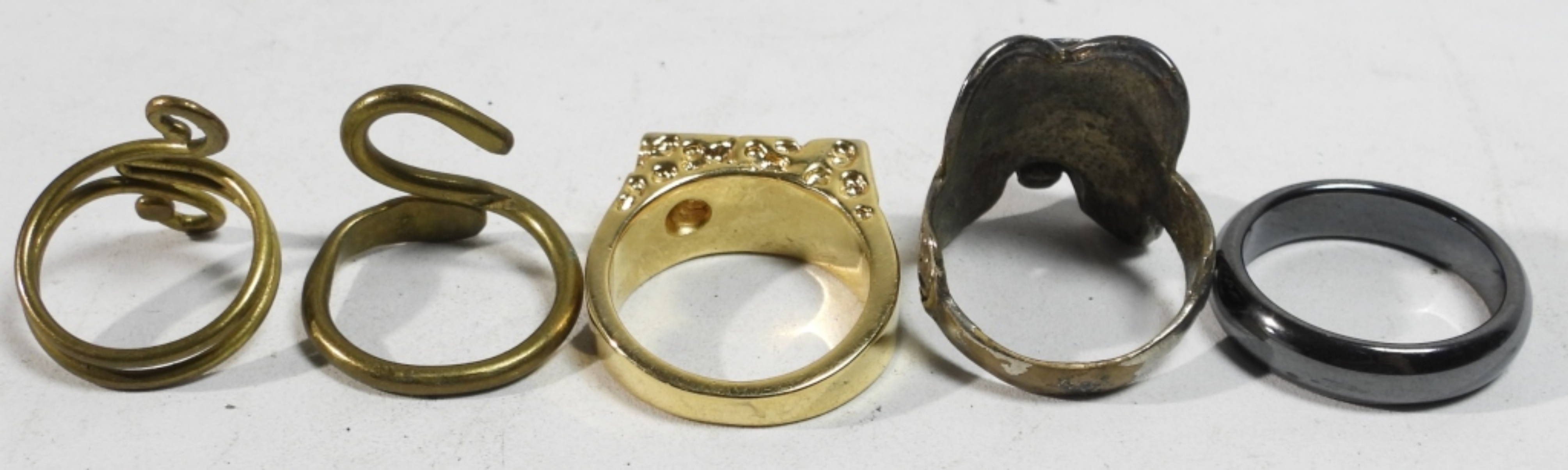 (2) WIRE RINGS – SADDLE & DRESS RING SIZE 11, HEMATITE SIZE 11