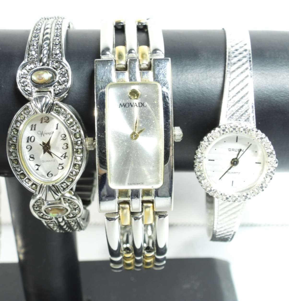 ALL DIFFERENT LADIES WATCHES – SILVER & GOLD TONE – GEMSTONES UNTESTED / UNVERIFIED