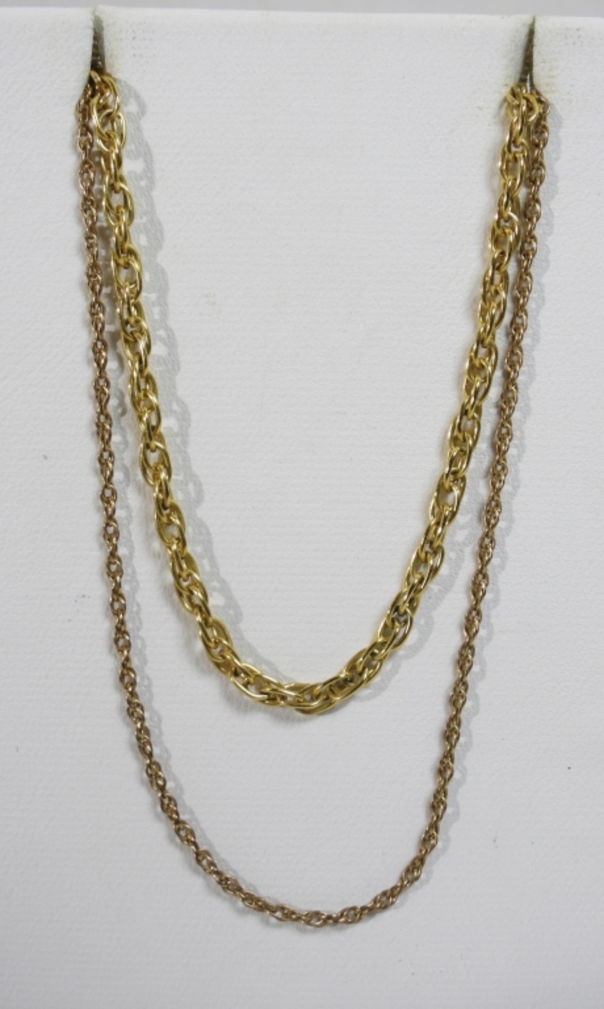 TWO GOLD TONE/ 12KGF CHAINS. 18″ & 20″.