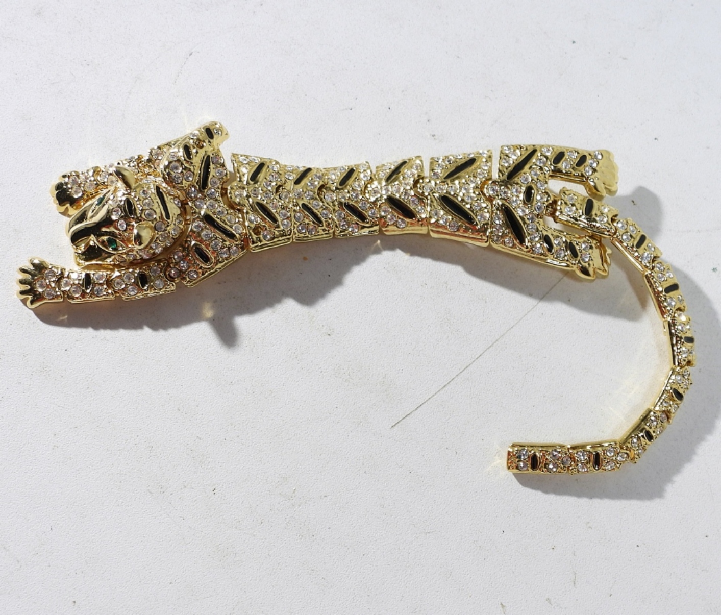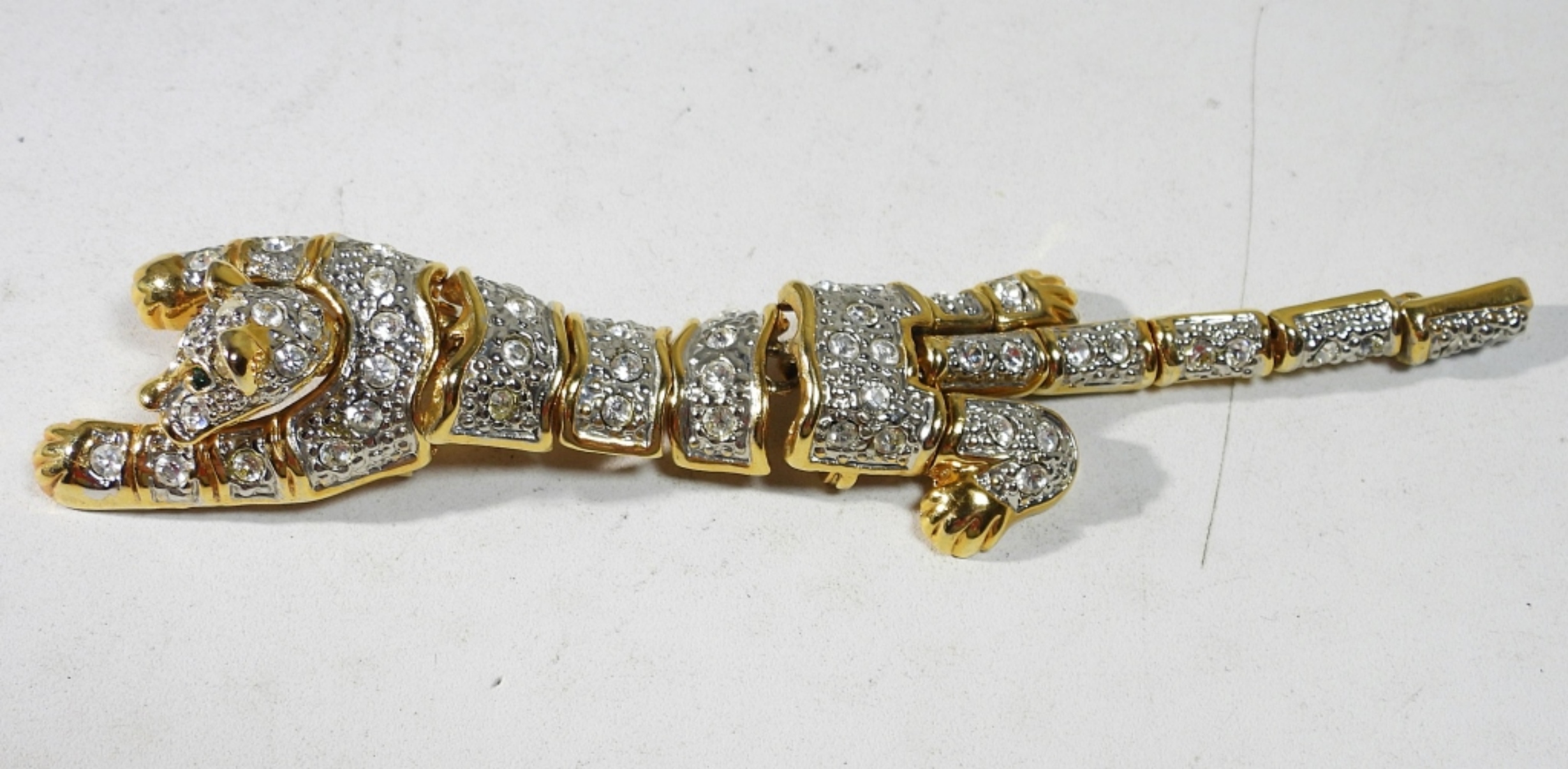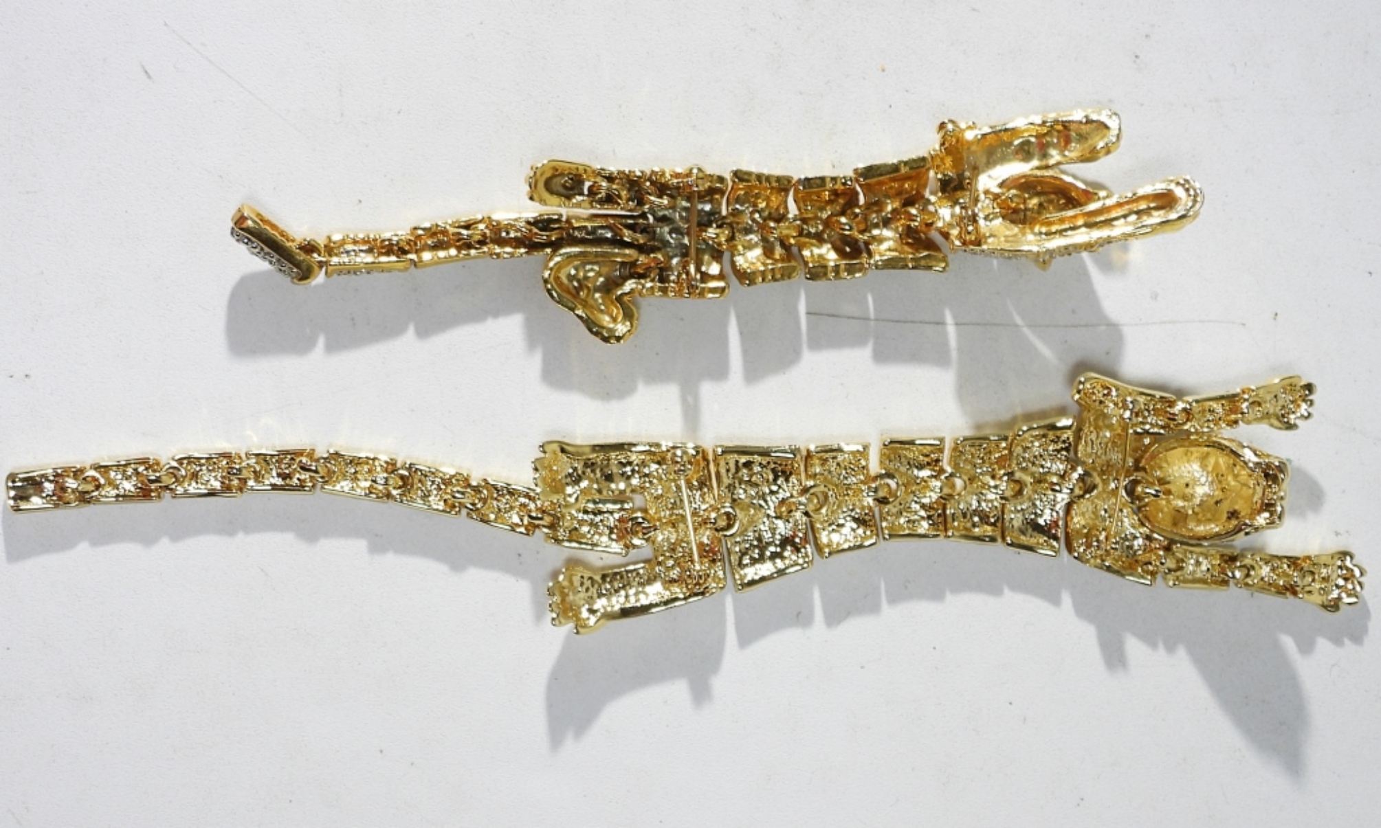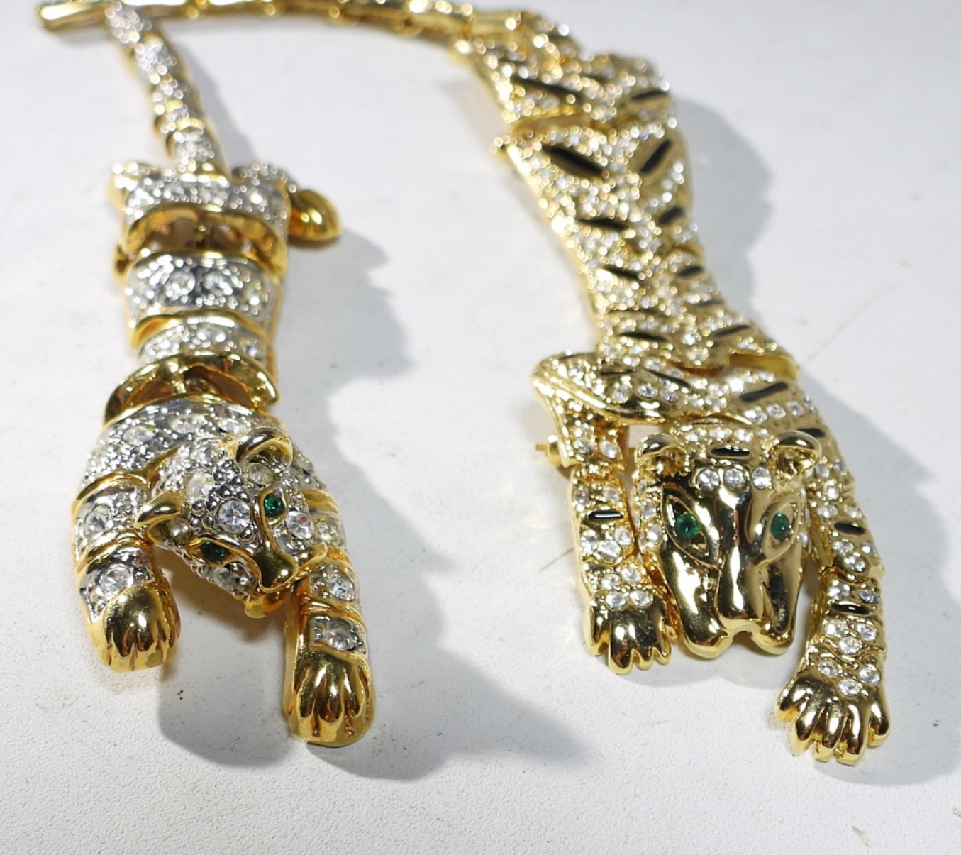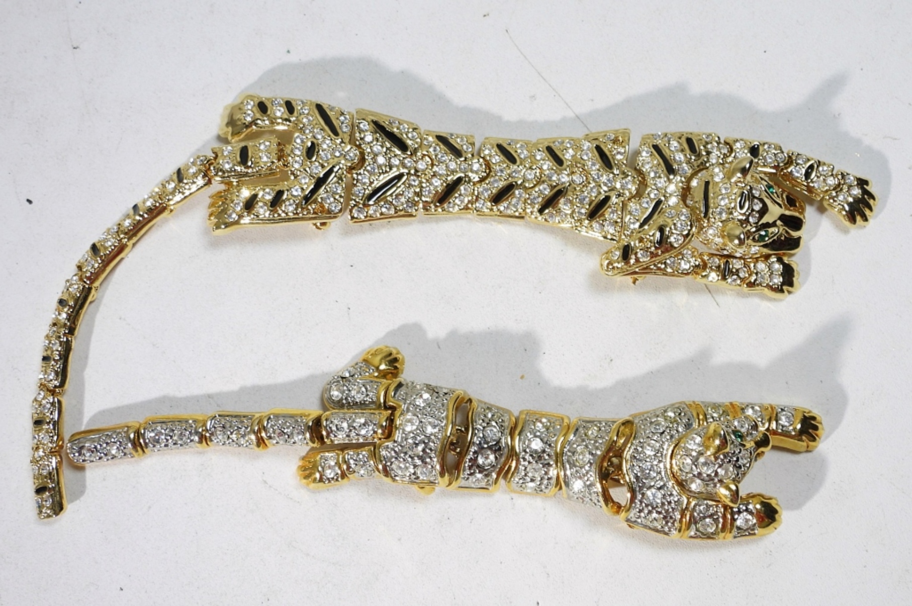 TWO VINTAGE ARTICULATED PANTHER BROOCHES IN GOLD TONE WITH GEMSTONES. VERY PRETTY PIECES! VINTAGE 1970’s / 1980’s.
