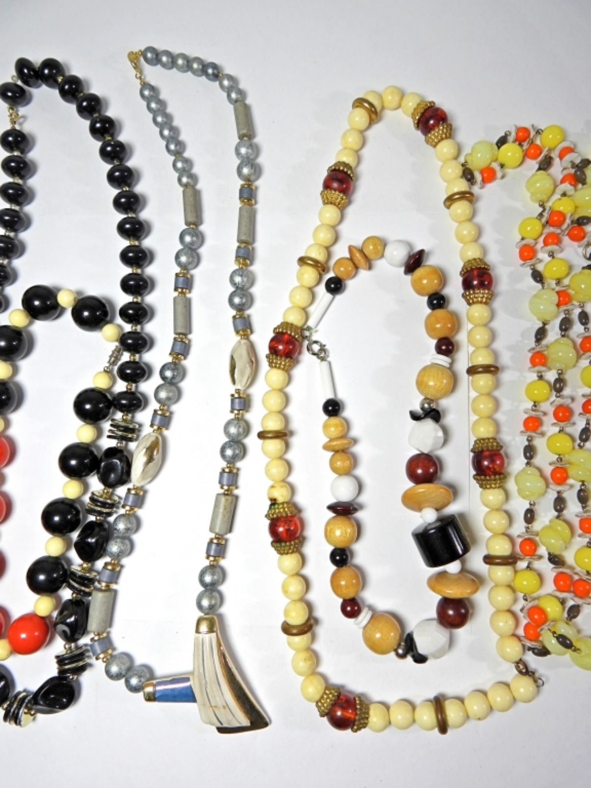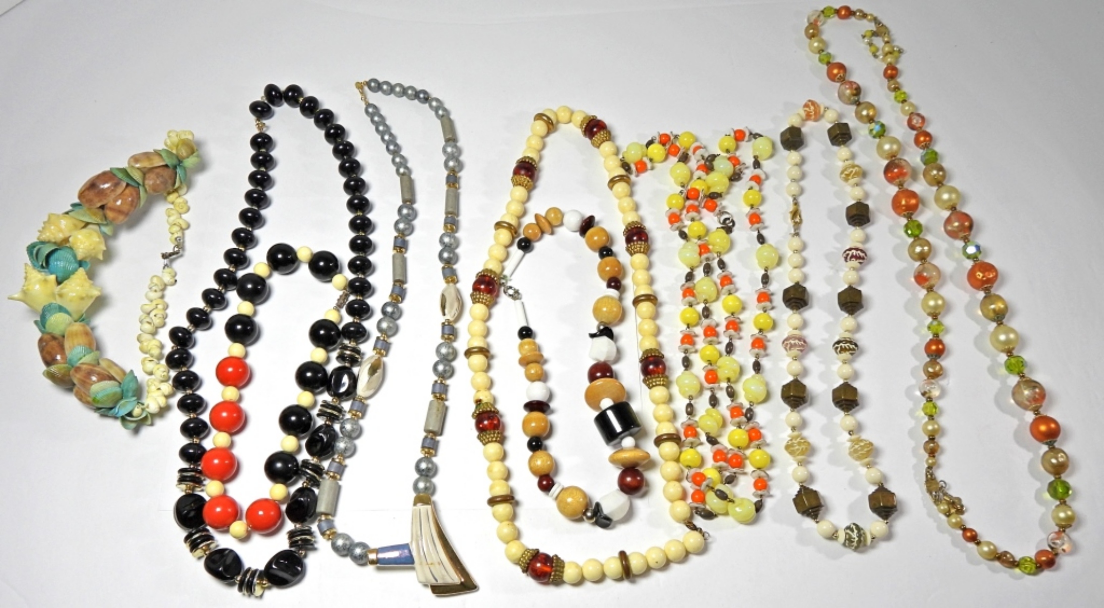9 OVERSIZED VINTAGE BEADED NECKLACES OF VARIOUS LENGHTS