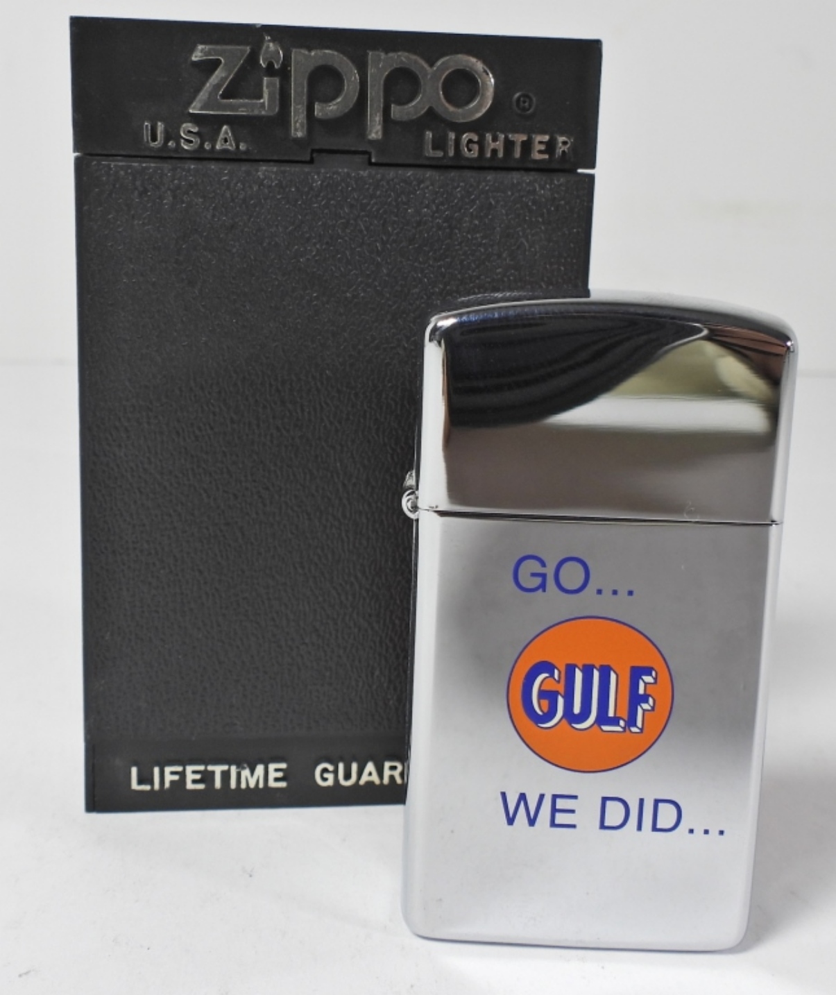 GO… GULF WE DID… ON THE FRONT, SEALED , IN A ZIPPO BOX