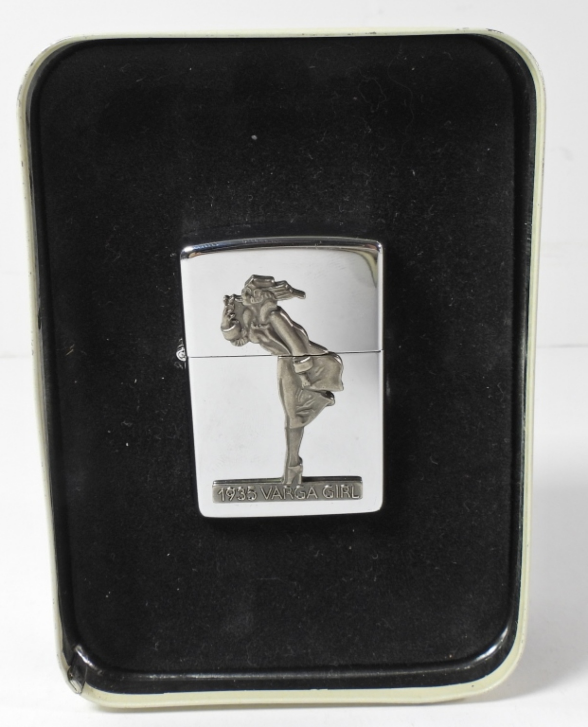 1993 SEALED, THE VARGA GIRL 1935 REPLICA ZIPPO IN ORIGINAL ZIPPO TIN BOX