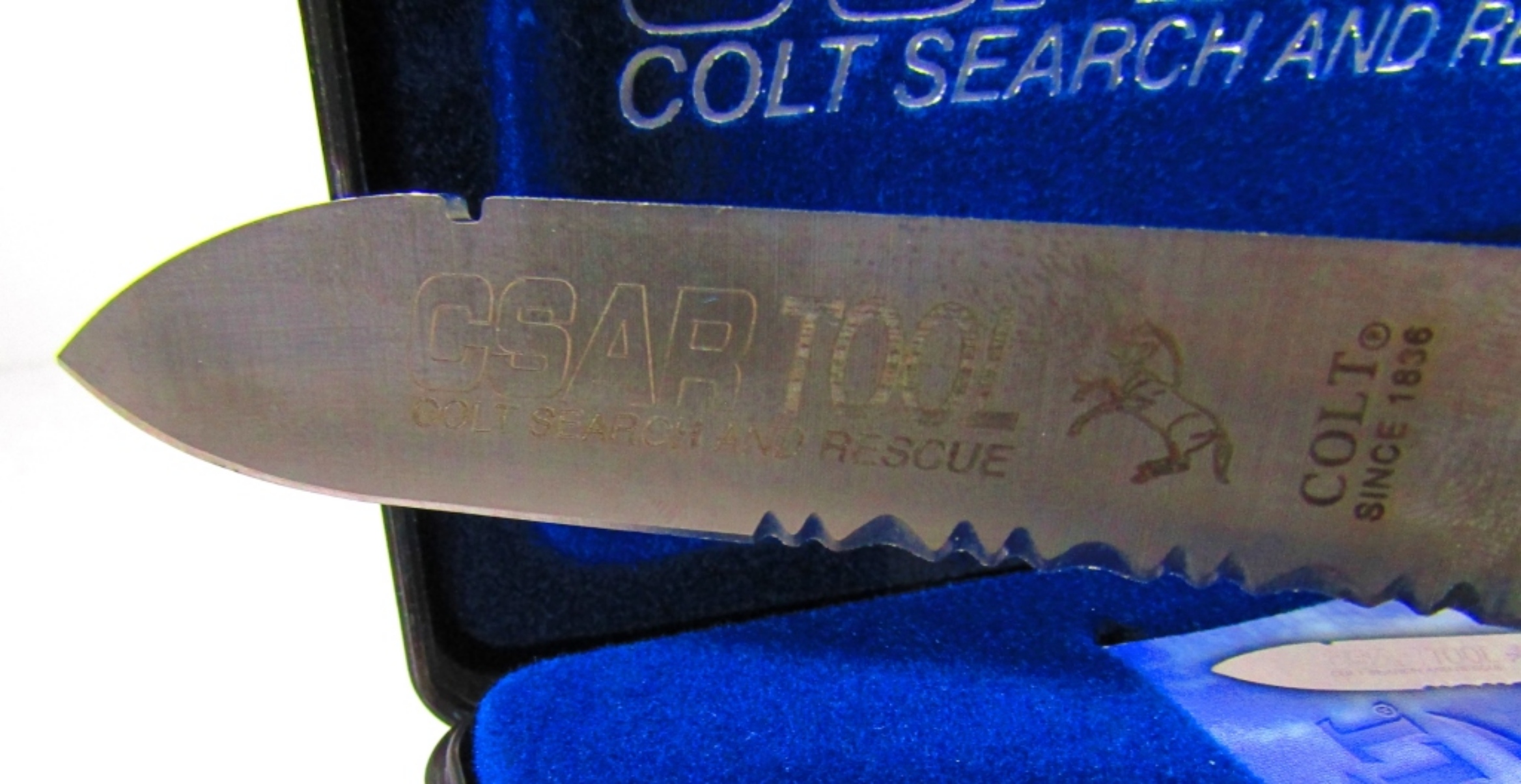 COLT SEARCH AND RESCUE KNIFE, BLACK HANDLE, SERRATED BLADE IN ORIGINAL CASE