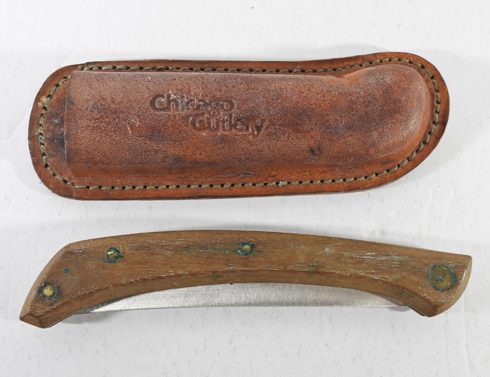 CHICAGO CUTLERY-THE TRAVELER FOLDING KNIFE AND SHEATH. LOOKS USED BUT IN GOOD CONDITION.