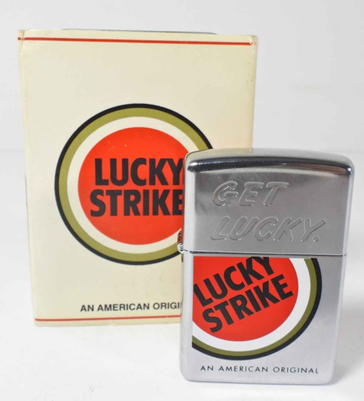 SEALED AND IN ITS ORIGINAL BOX WITH LUCKY STRIKE SLEEVE OVER TIN CASE.