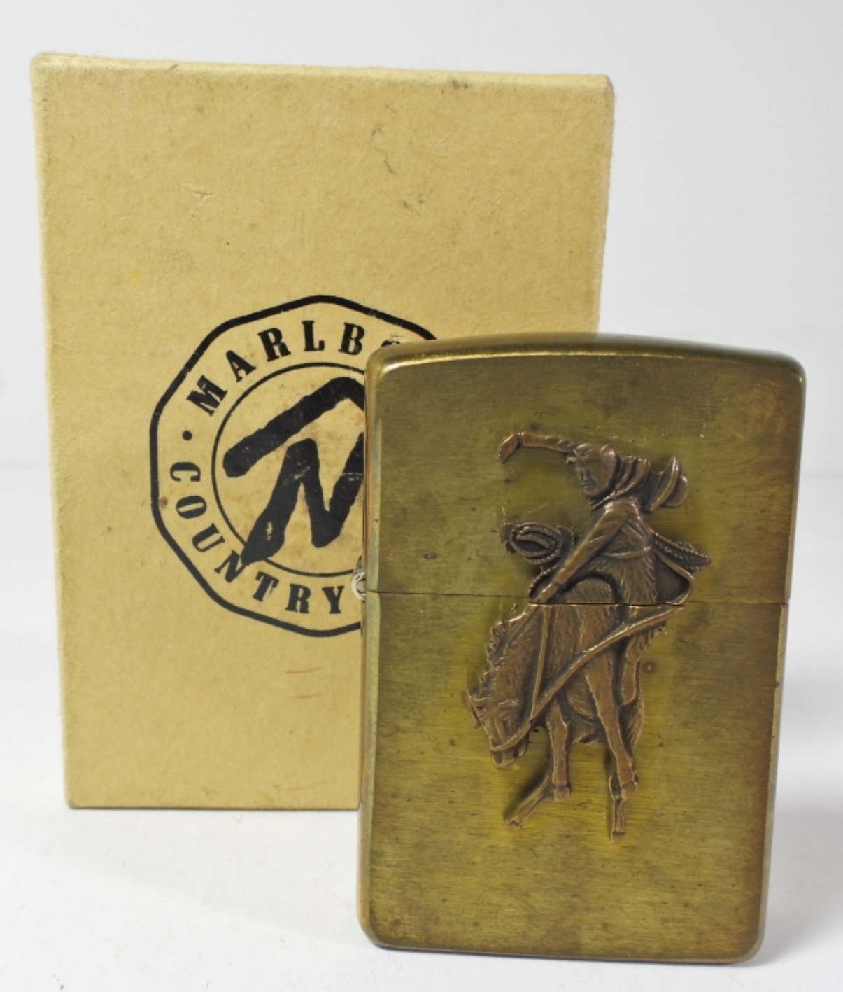 BRASS, FROM MARLBORO COUNTRY STORE BOX, RIDING BULL ON THE FRONT ON THE BACK MARLBORO COUNTRY STORE LOGOS