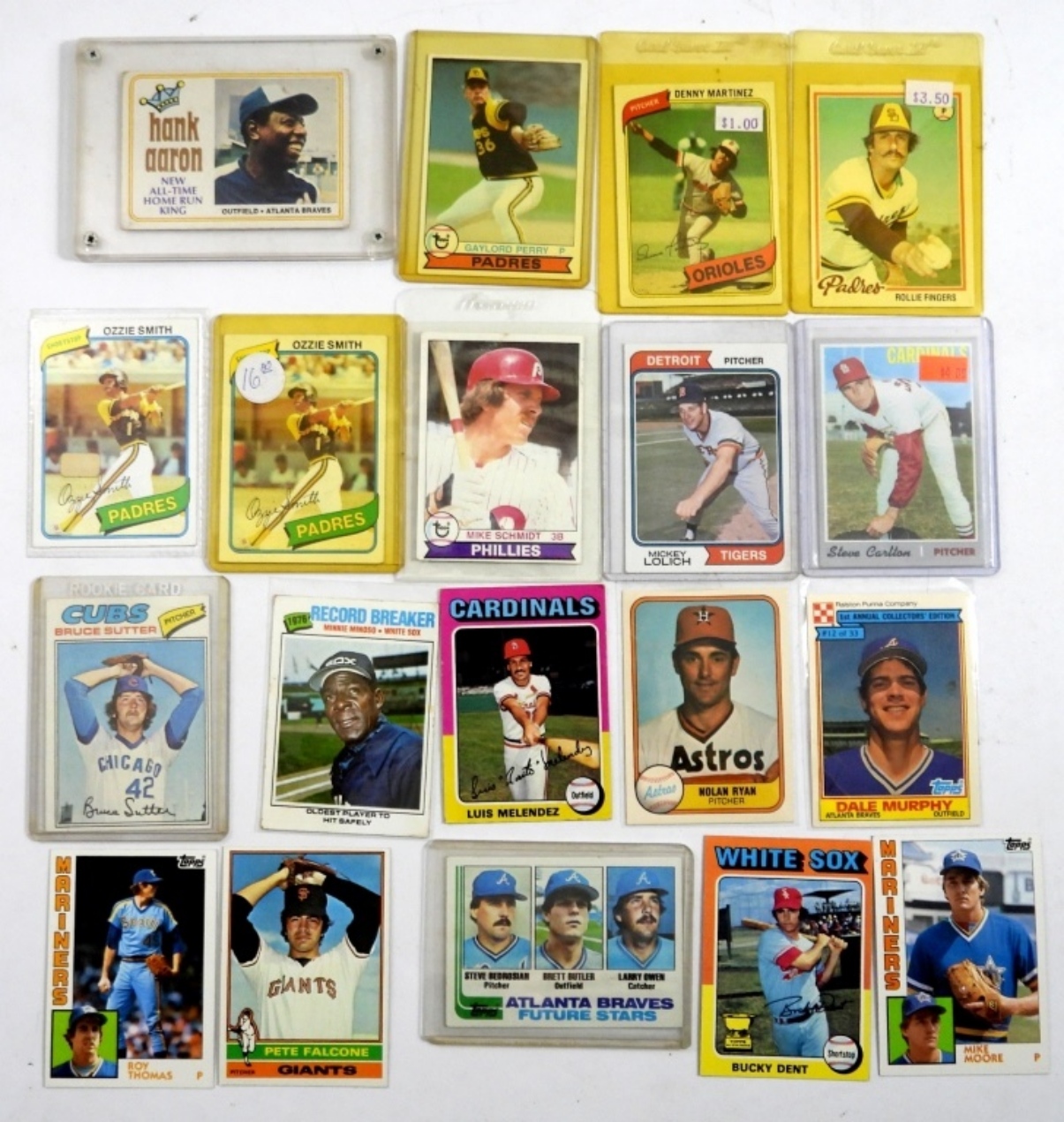 (2) OZZIE SMITH ROOKIES, CARLTON, SCHMIDT, AARON & MORE