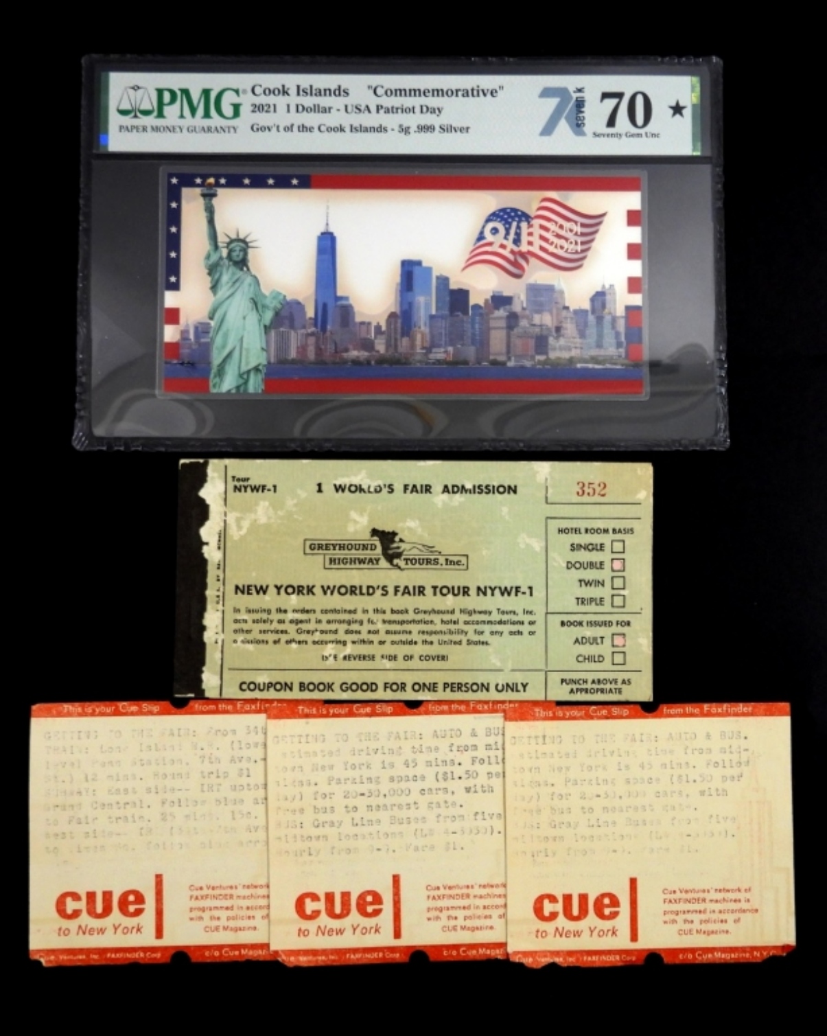 plus 2021 NEW YORK COMMEMORATIVE USA PATRIOT DAY COOK ISLAND NOTE PMG 70