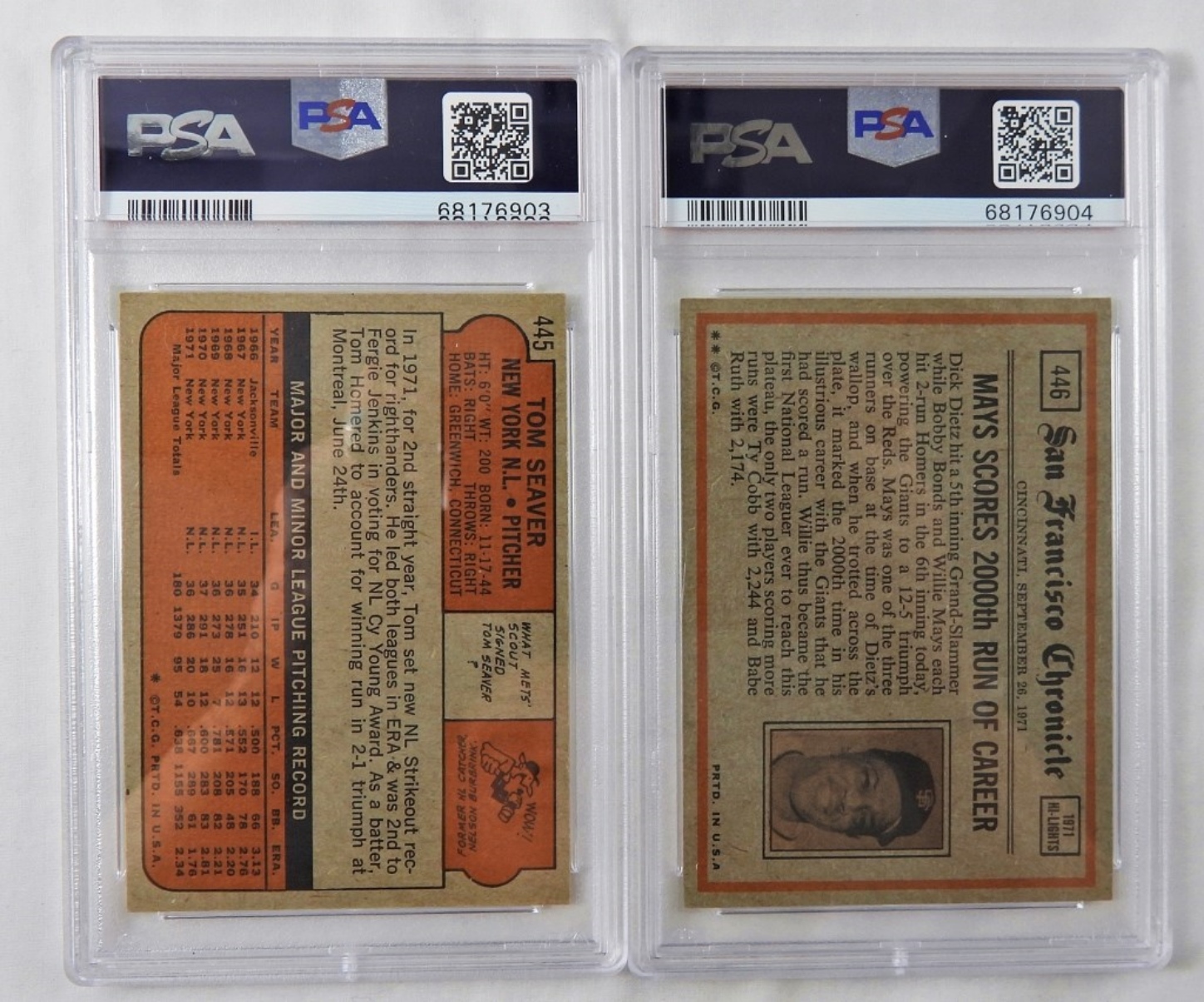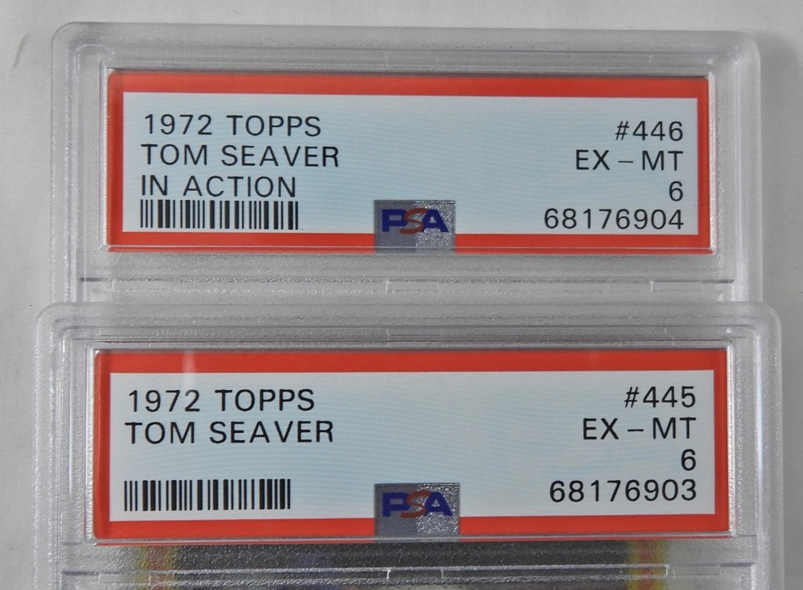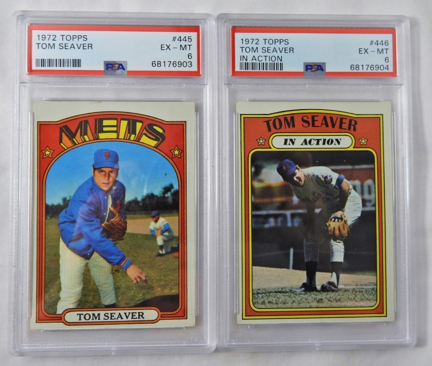 PSA TOPPS 1972 TOM SEAVER CARDS. #445, EX-MT, 6, 68176903. PSA TOPPS 1972 TOM SEAVER IN ACTION, #446, EX-MT, 6, 68176904