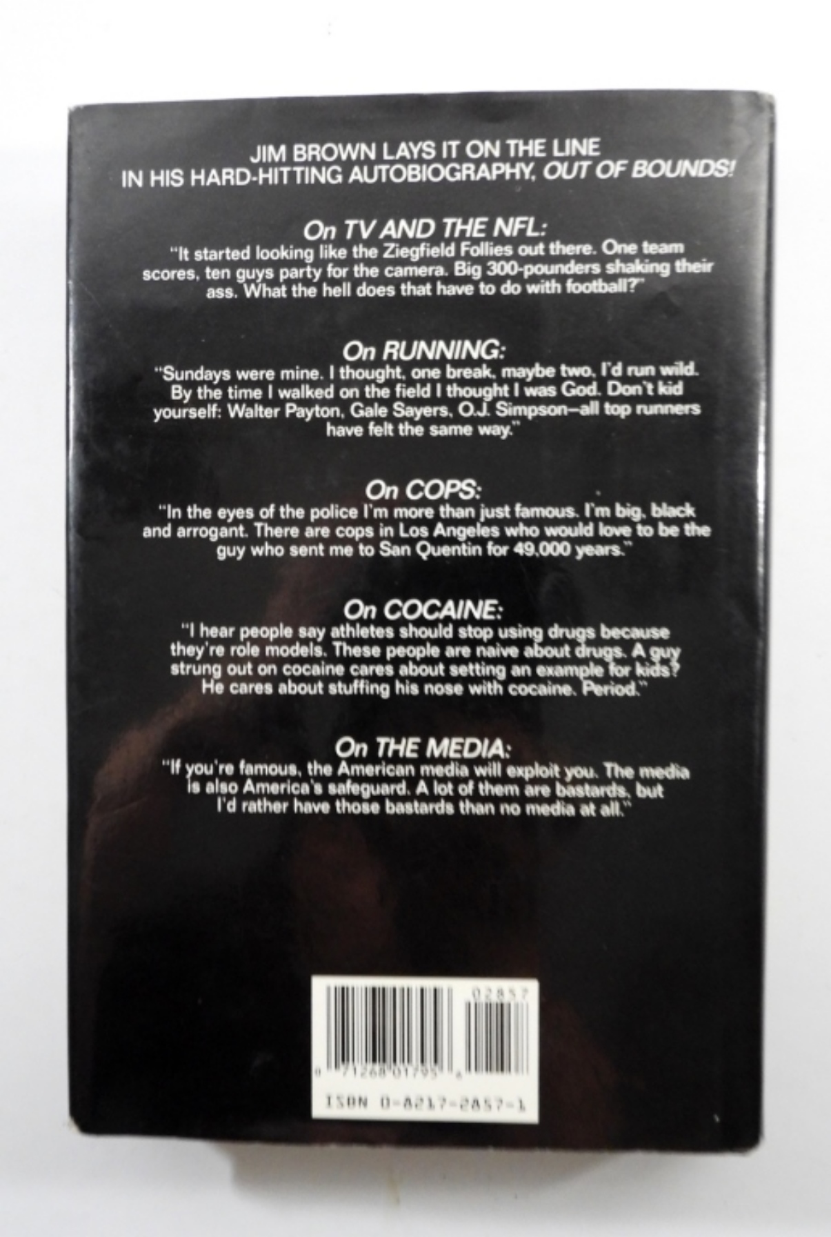 FIRST PRINT 1989, SIGNED ” TO TOM, HAPPY BOOK DAY JIM BROWN” INSIDE THE COVER