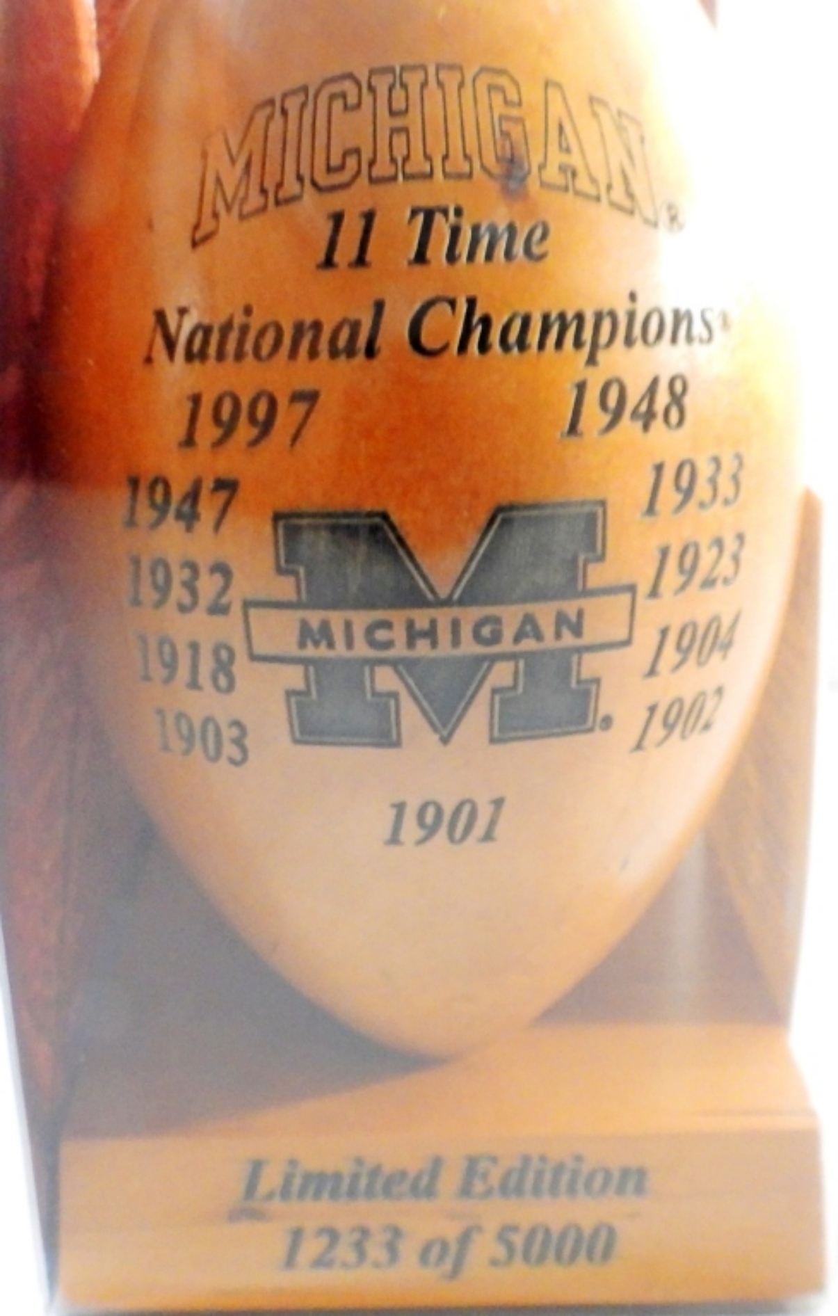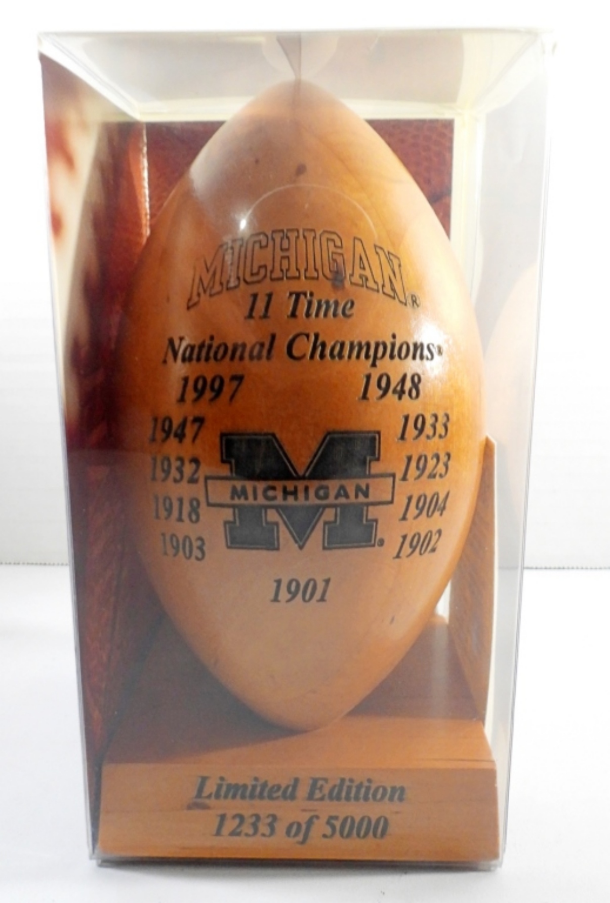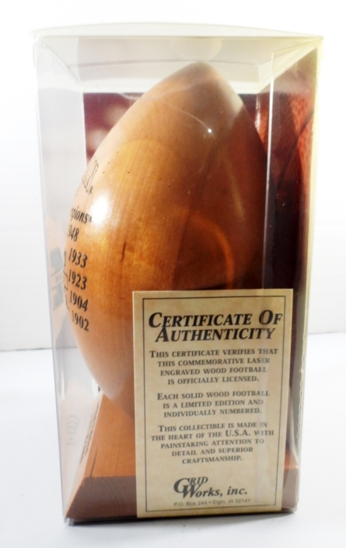 LASER-ENGRAVED SOLID COLLEGE FOOTBALL, 11-TIME NATIONAL CHAMPIONS, LIMITED EDITION 1233 OF 5000, COMES WITH ORIGINAL BOX, COA GRID WORKS, INC.