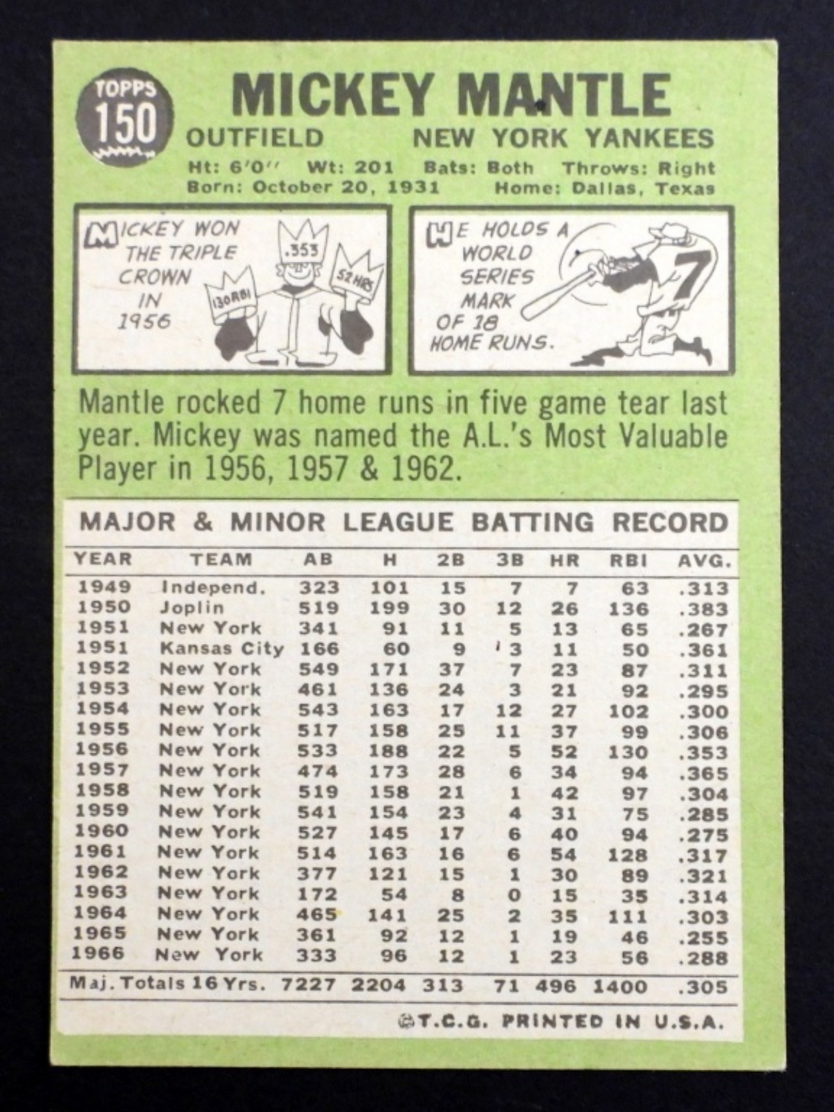 1967 TOPPS #150 MICKEY MANTLE
