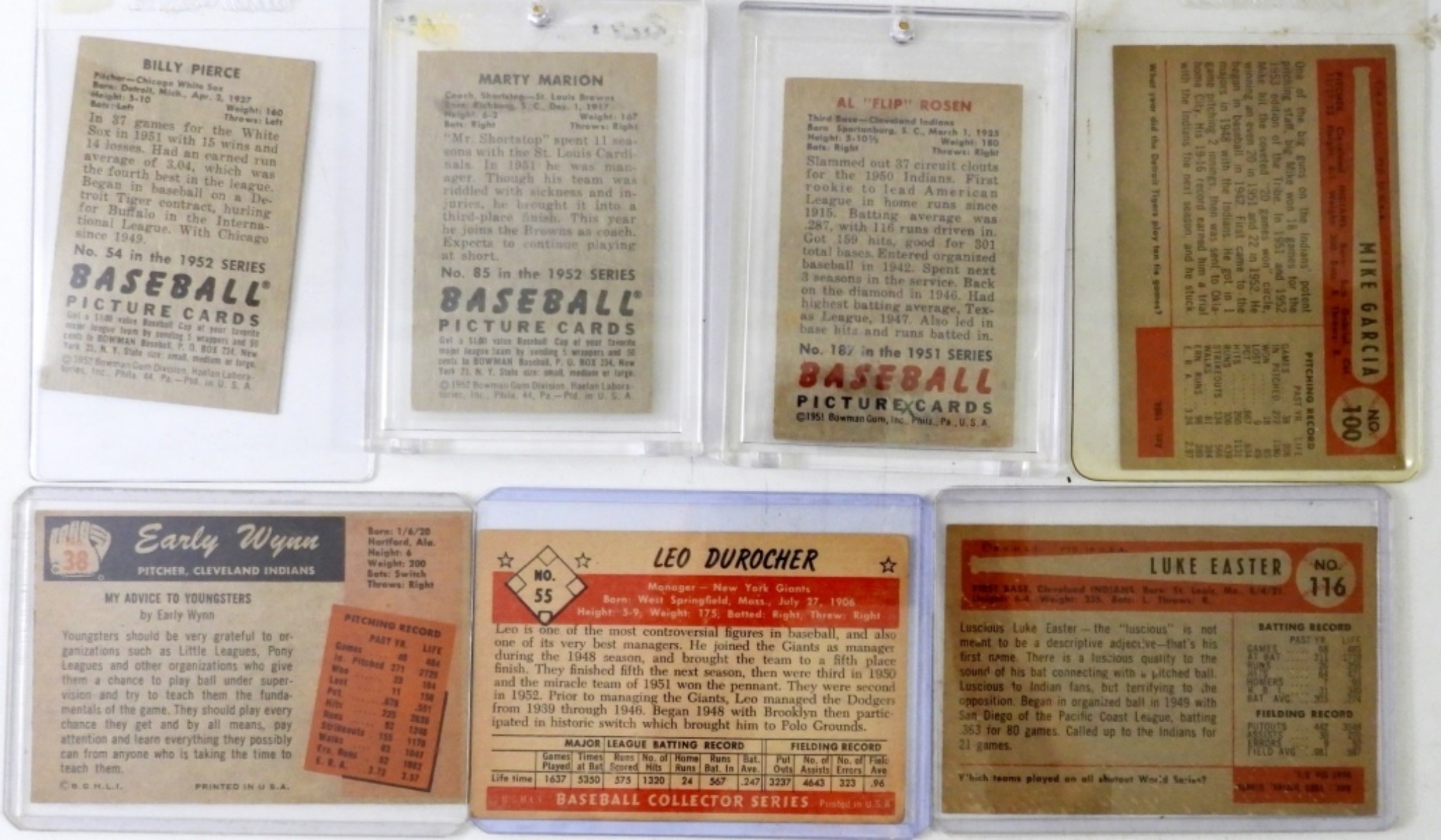 1951 ROSEN, 1952 MARION & PIERCE, 1953 DUROCHER, 1954 EASTER & GARCIA, 1955 WYNN – MOSTLY EX/VGEX