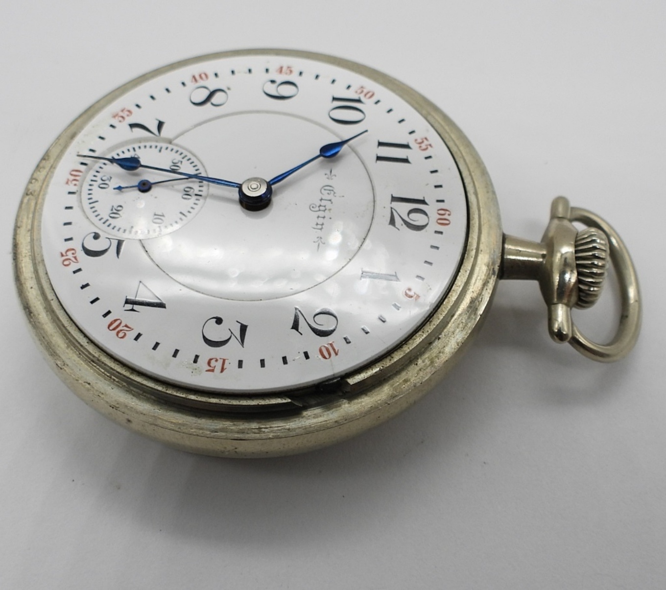 NICE DOUBLE SUNK PROCELAIN DIAL. 21 JEWEL MOVEMENT, LEVER SET. NICKELOID SCREWBACK CASE *All Pocket Watches tested to be in working order at the time of listing.