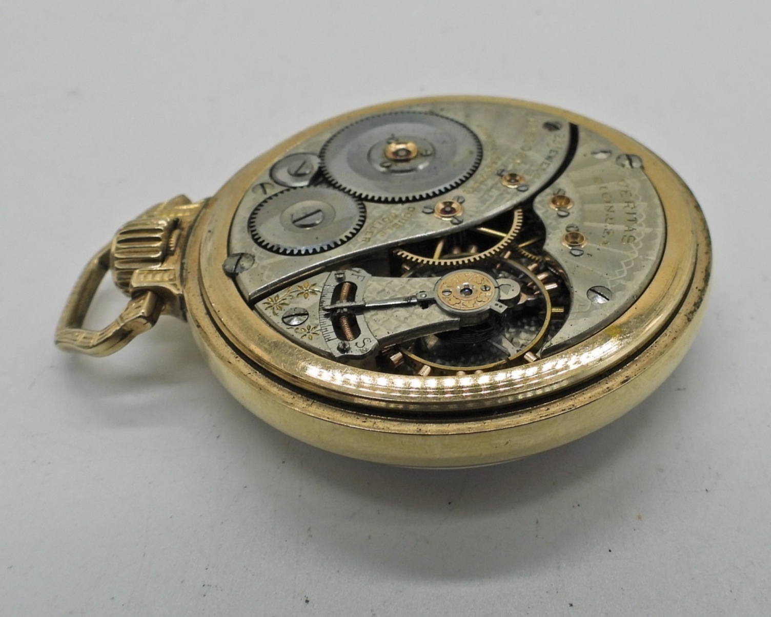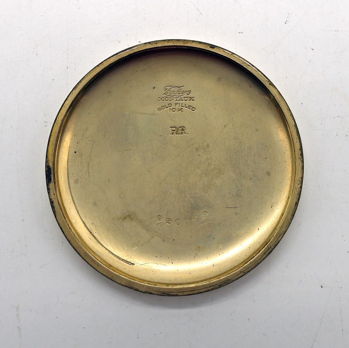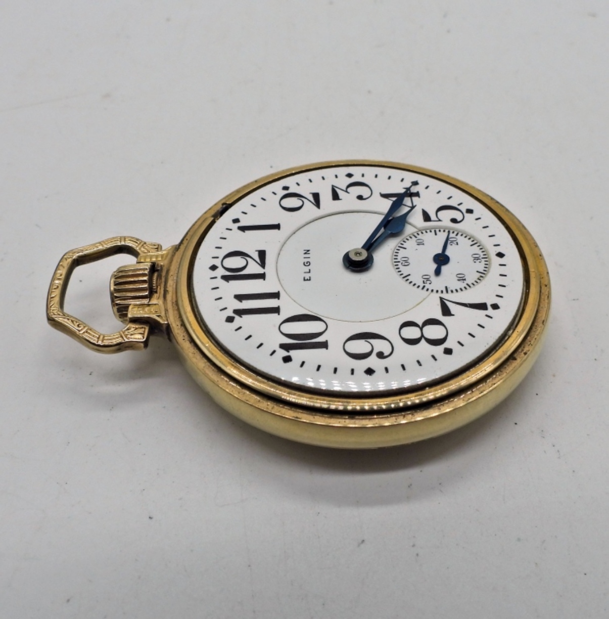 PERFECT DOUBLE SUNK PORCELAIN DIAL. 23 JEWEL, GRADE 376 VARITAS MOVEMENT. YELLOW GOLD FILLED SCREWBACK CASE MARKED “RR” *All Pocket Watches tested to be in working order at the time of listing.