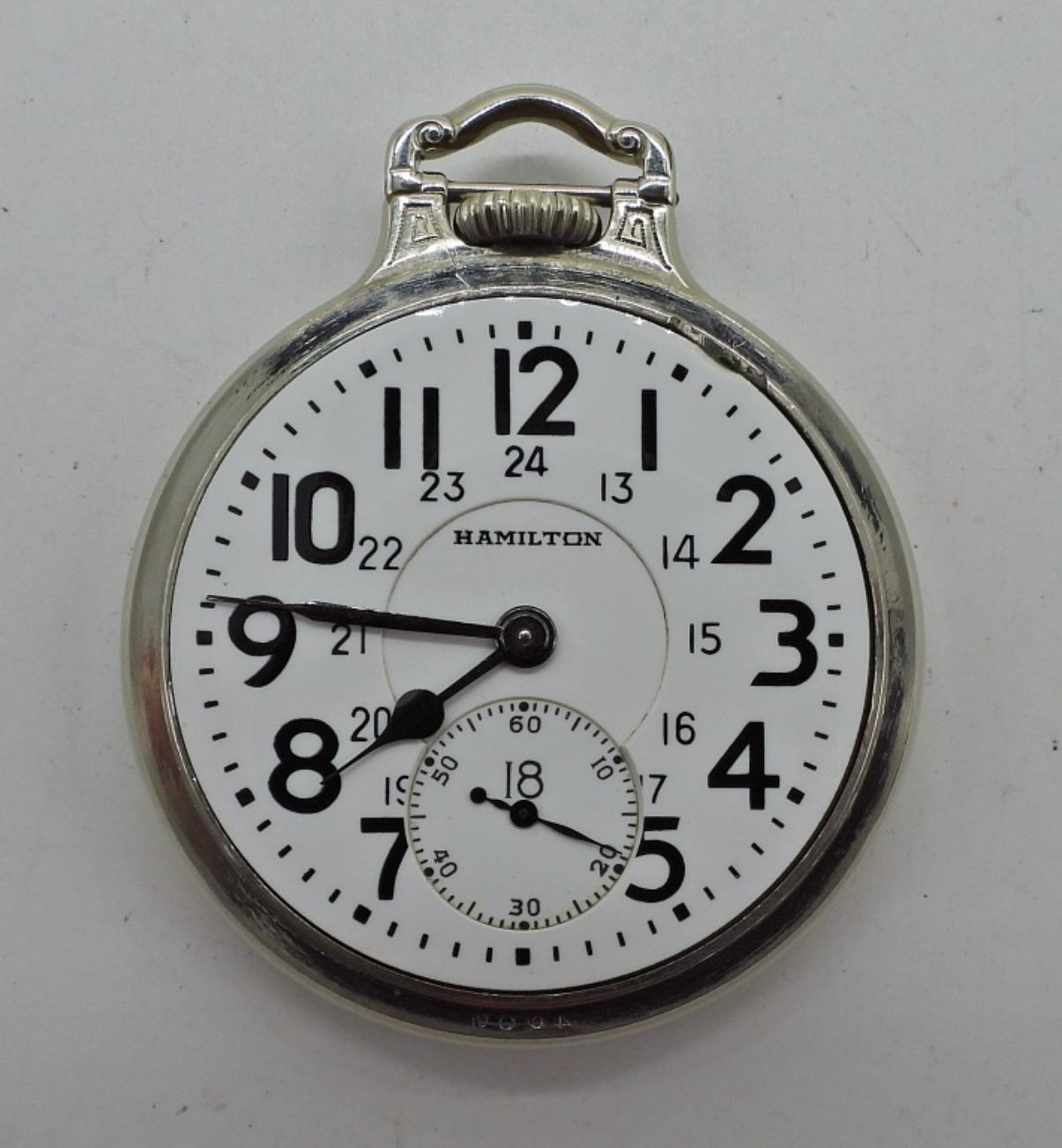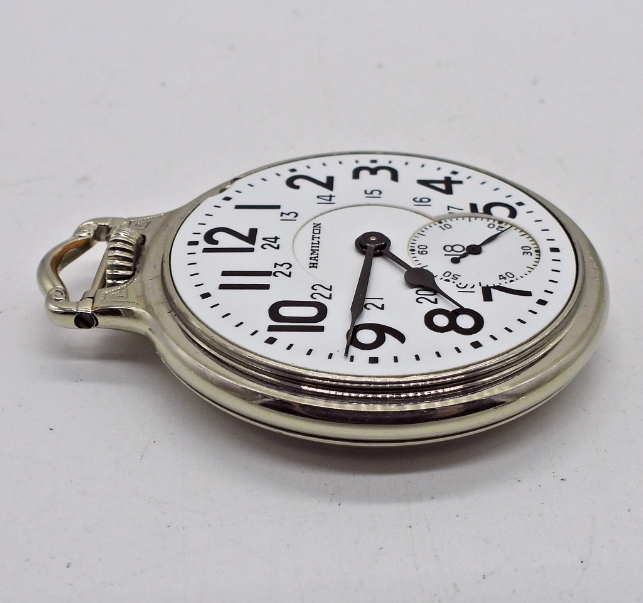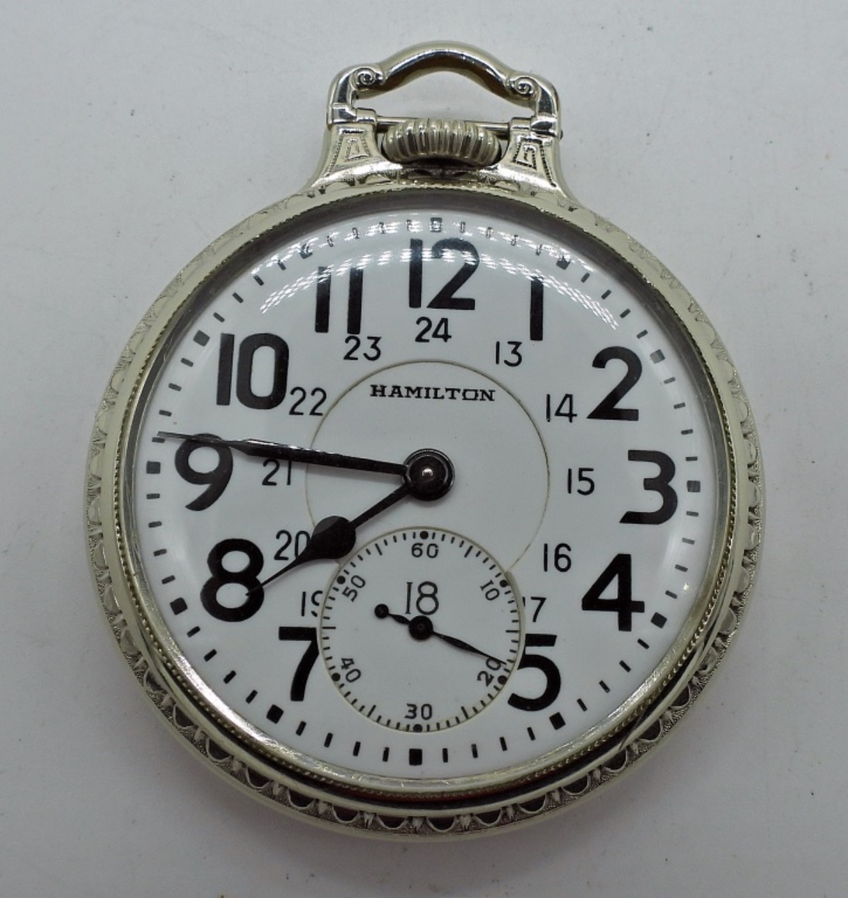 NICE DOUBLE SUNK PORCELAIN DIAL. 23 JEWEL, LEVER SET MOVEMENT. 10kt GOLD FILLED HAMILTON MARKED MODEL A CASE *All Pocket Watches tested to be in working order at the time of listing.