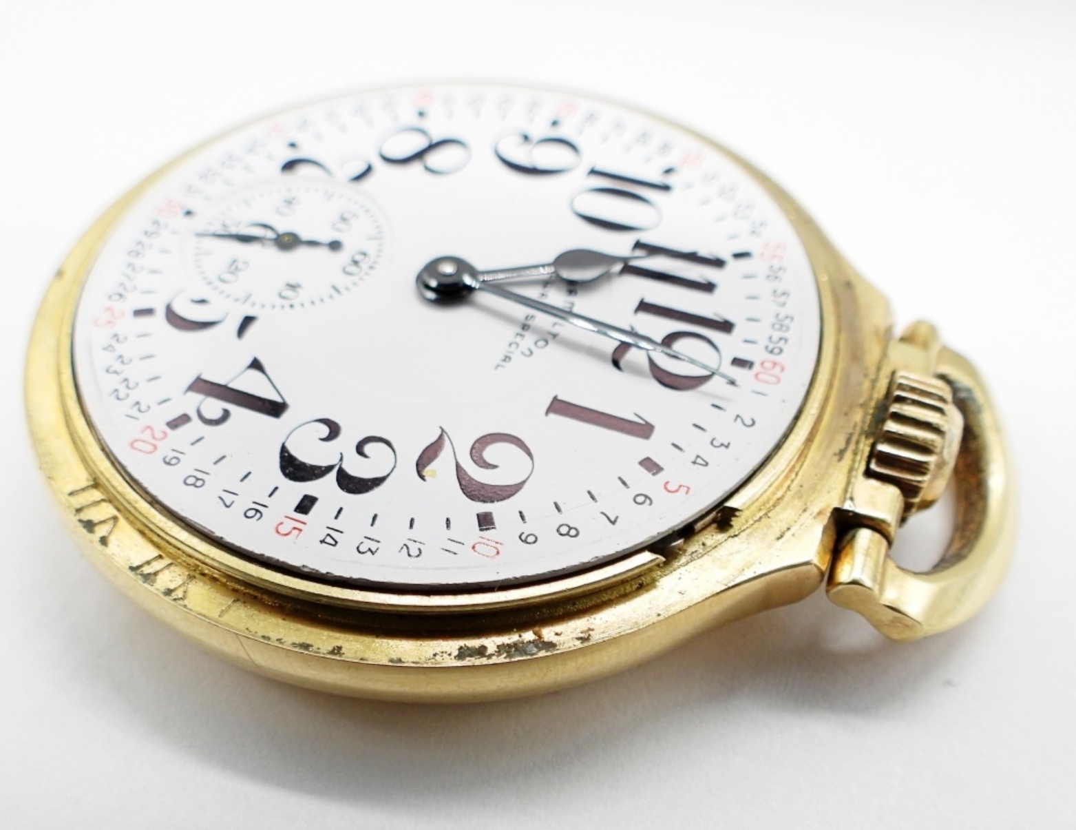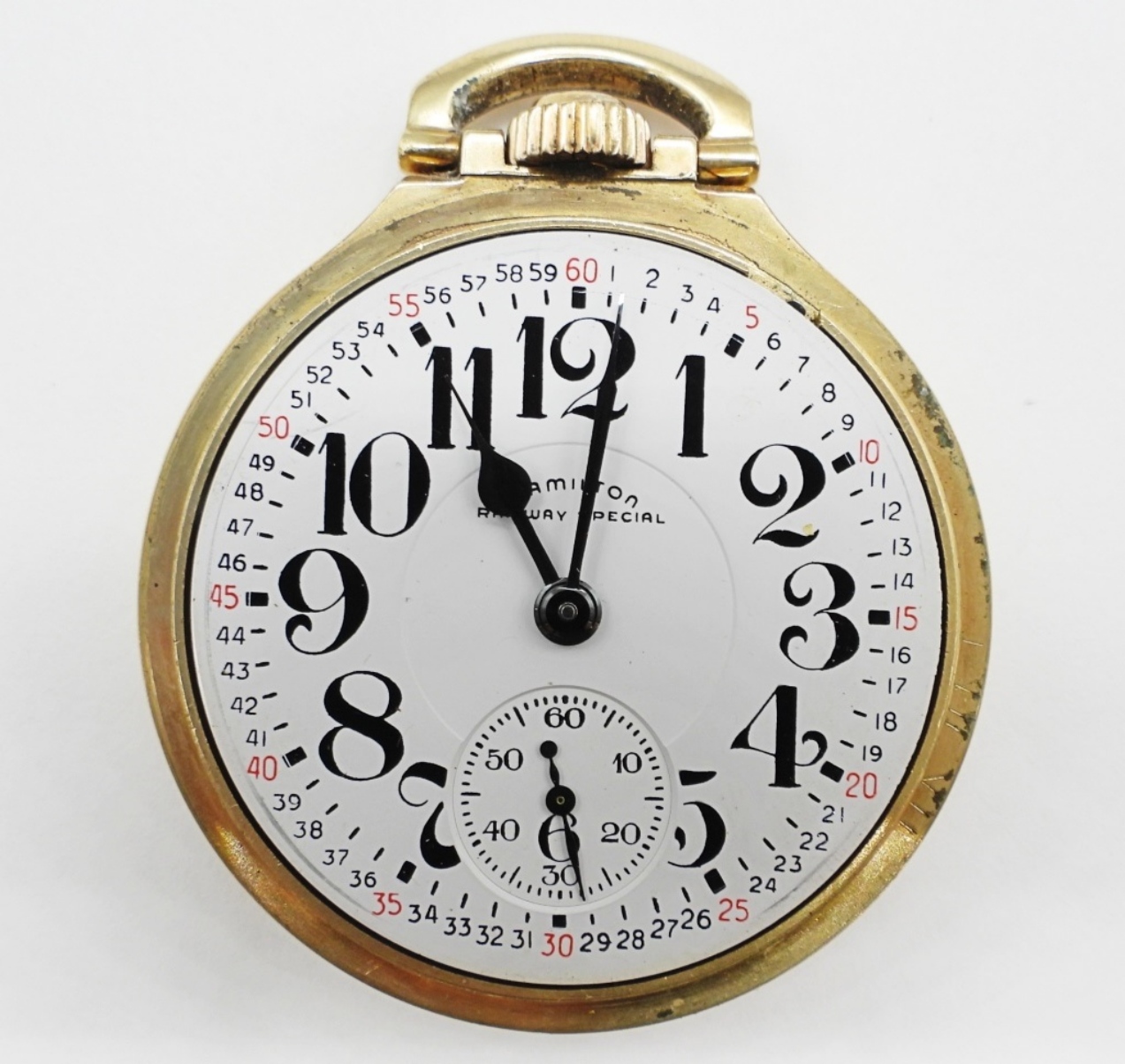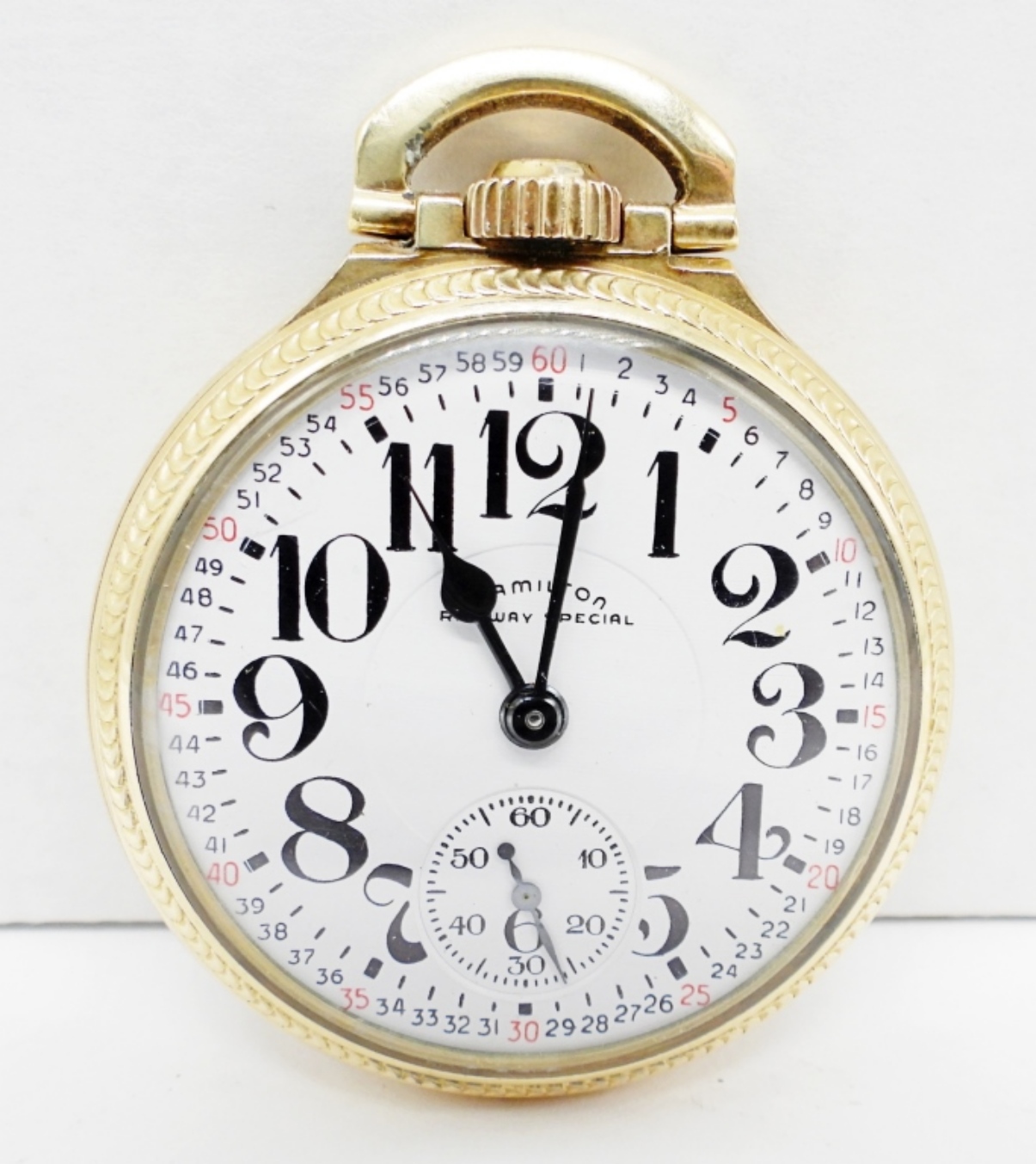 NICE ORIGINAL MONTGOMERY MELAMINE DIAL. 21 JEWEL LEVER SET GRADE 992B. YELLOW ROLLED GOLD PLATE SCREWBACK CASE SIGNED HAMILTON *All Pocket Watches tested to be in working order at the time of listing.