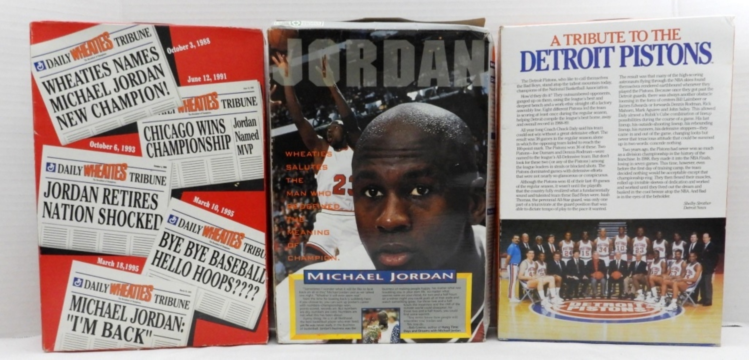 (2) JORDAN (1) DETROIT PISTONS – SEALED – SHOWS SOME WEAR