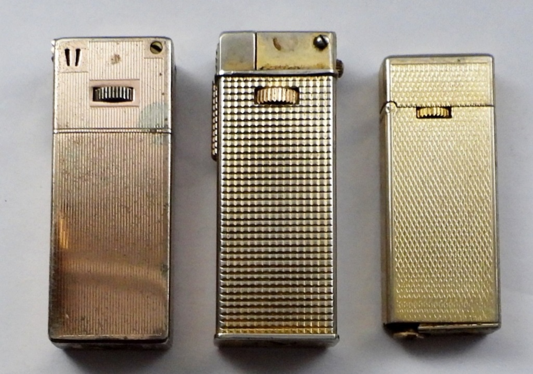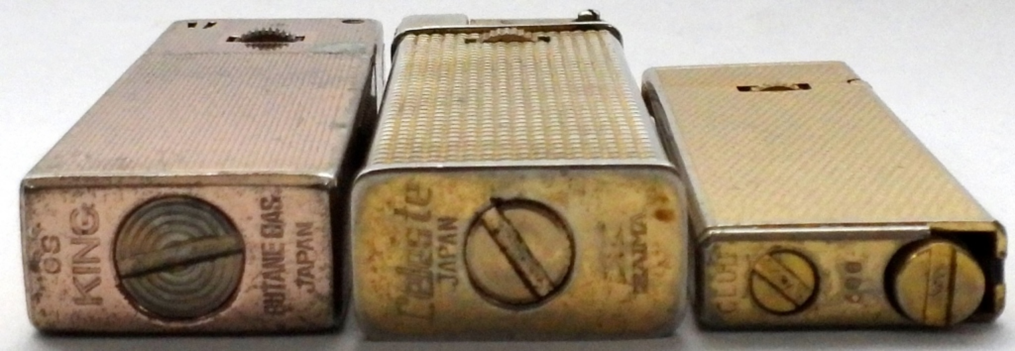 ZAIMA CELESTE GOLD TONE LIGHTER MADE IN JAPAN, GS KING BUTANE GAS LIGHTER, CLUB HANDHELD GOLD TONE LIGHTER, USED CONDITION