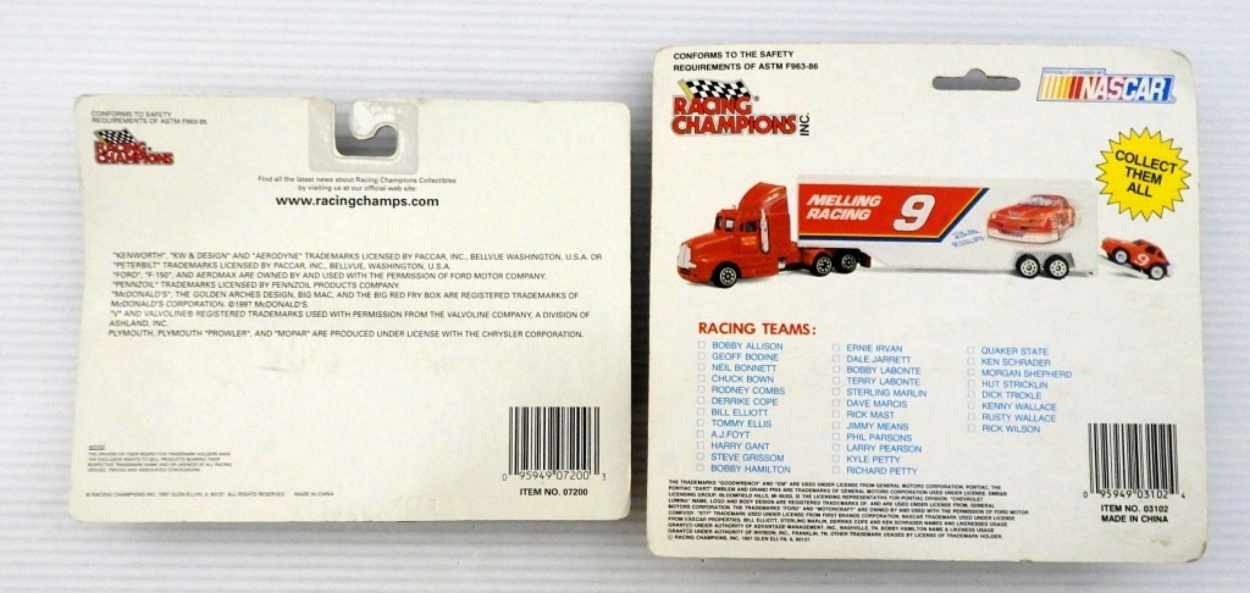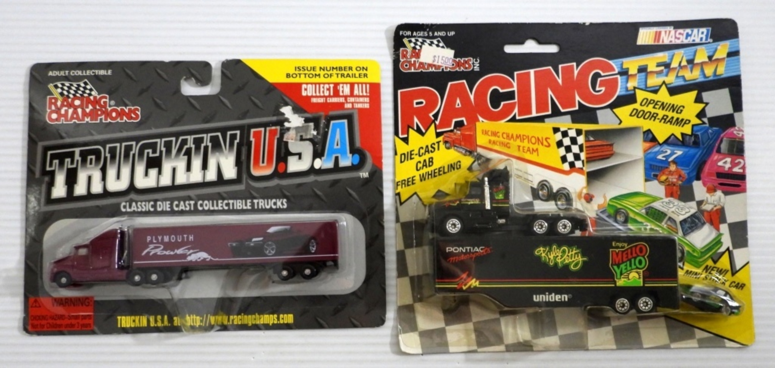 FACTORY SEALED BRAND NEW – 1991 NASCAR RACING TEAM DIE CAST CAB FREE WHEELING SEMI; 1997 TRUCKIN USA PLYMOUTH PROWLER SEMI