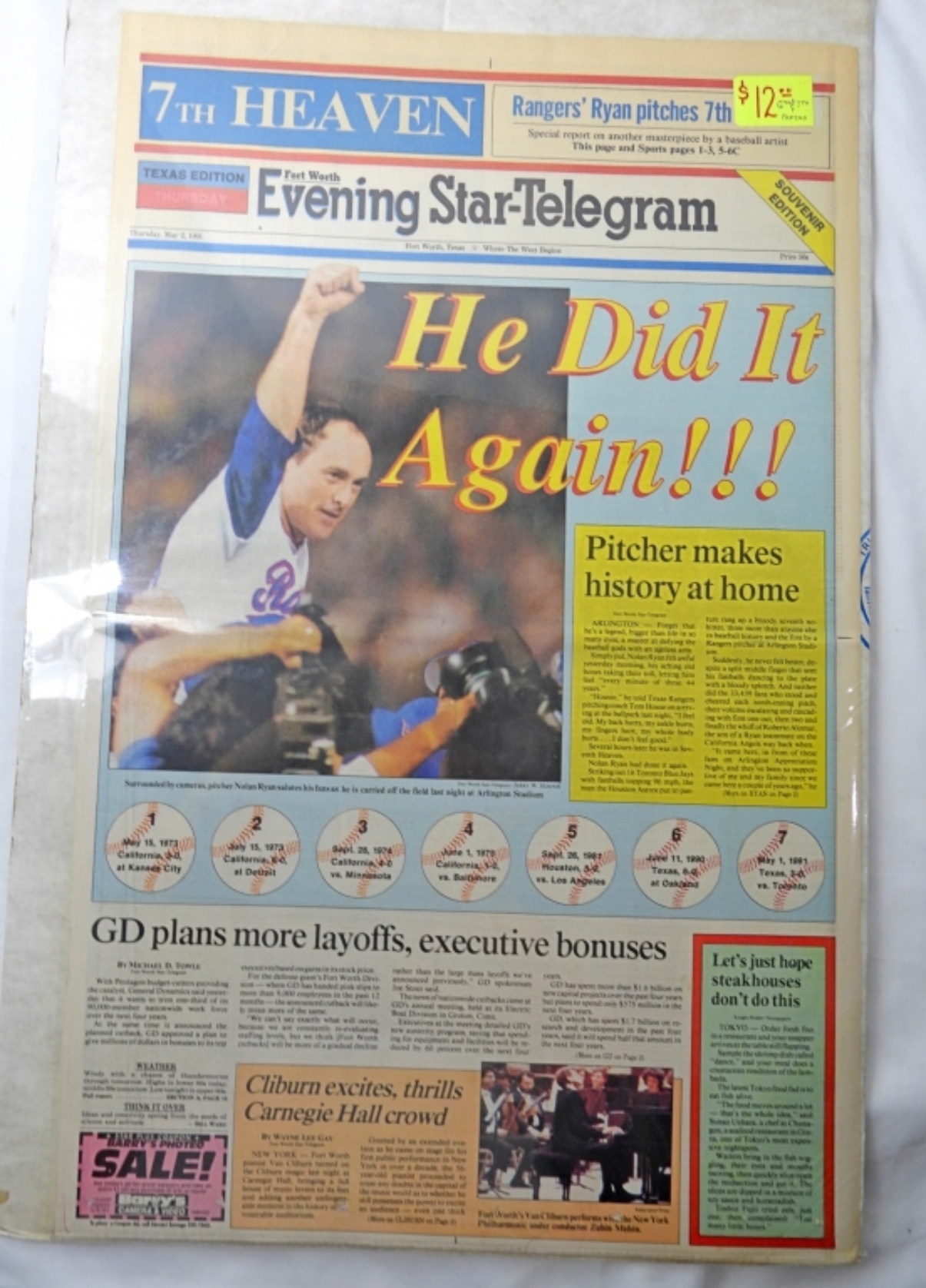 COMPLETE EVENING STAR-TELEGRAM BOARDED NICE CONDITION & DETROIT TIGERS ALL-TIME TEAM POSTER