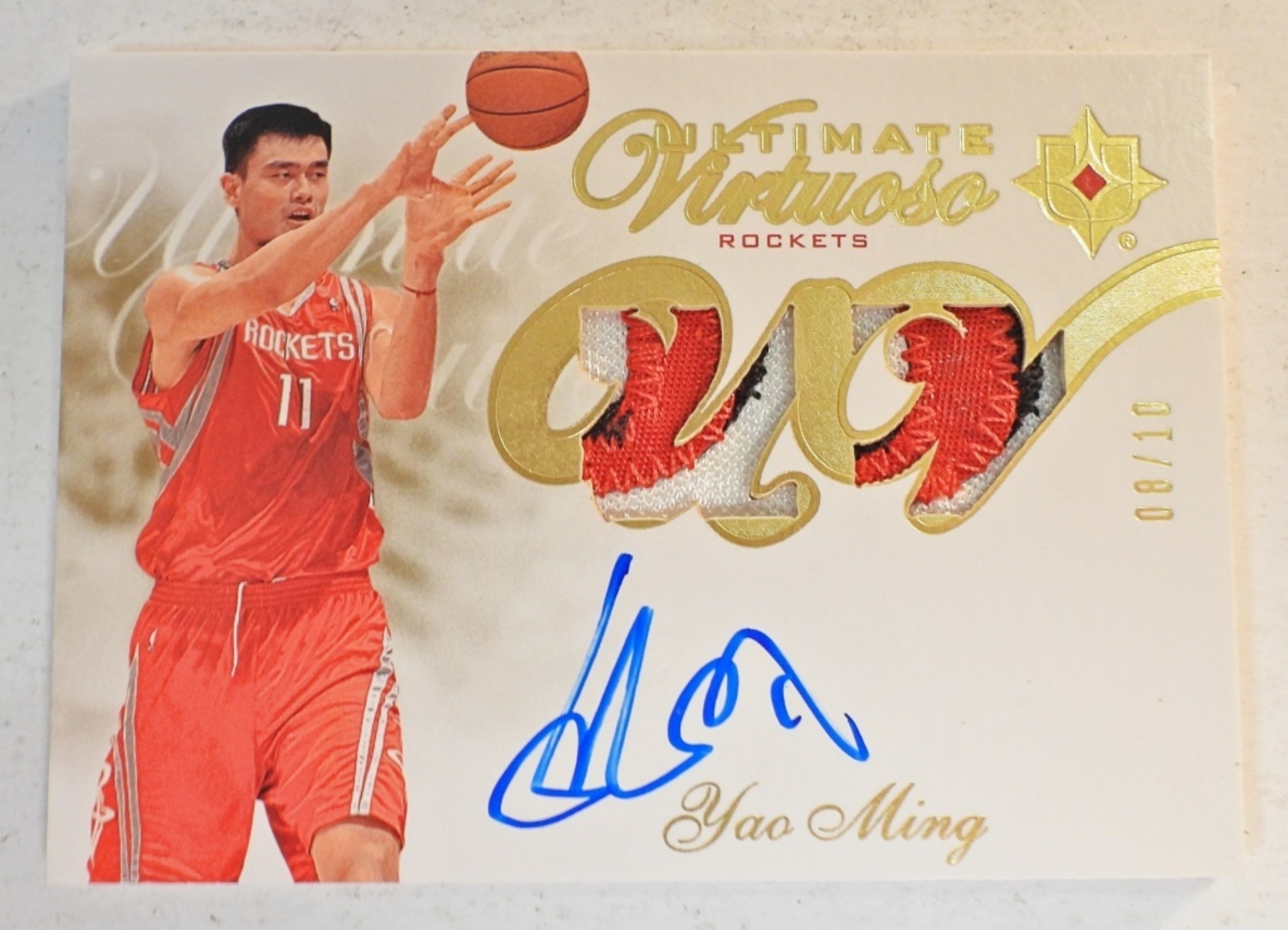 UPPER DECK ULTIMATE VIRTUOSO JERSEY SIGNATURE YAO MING CARD. NUMBERED 08/10. NM